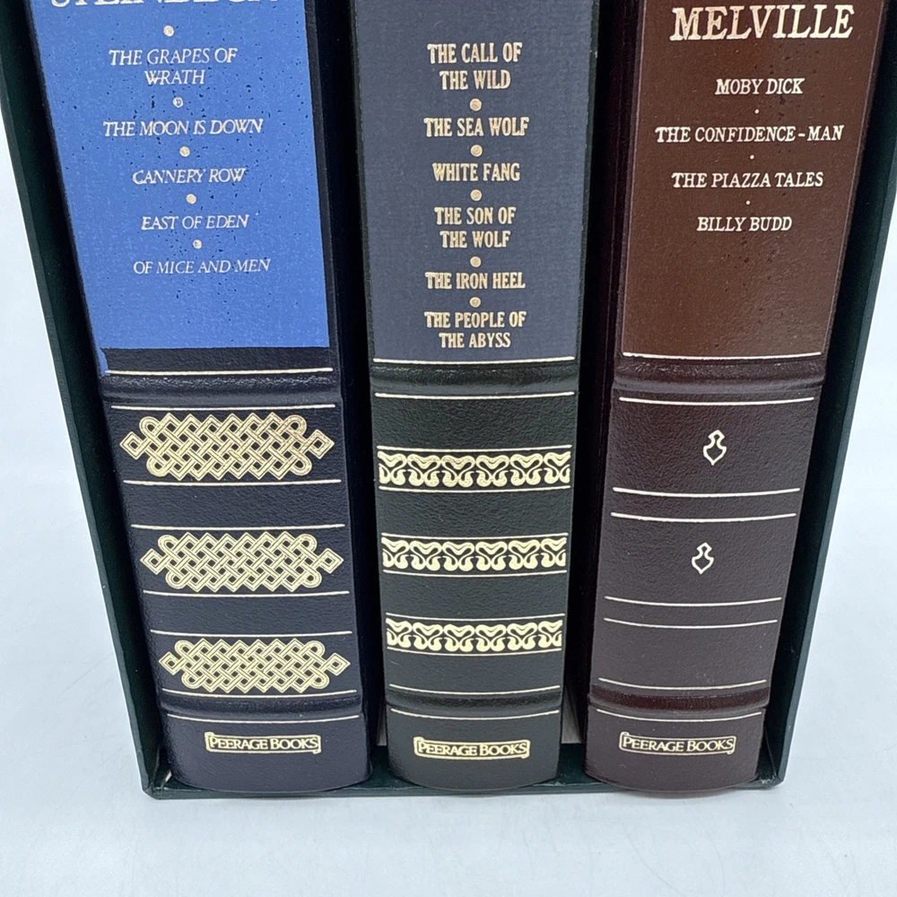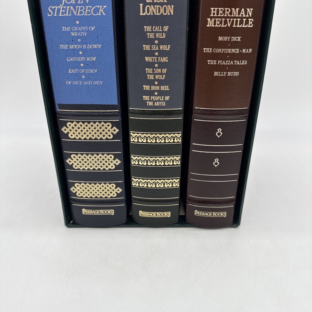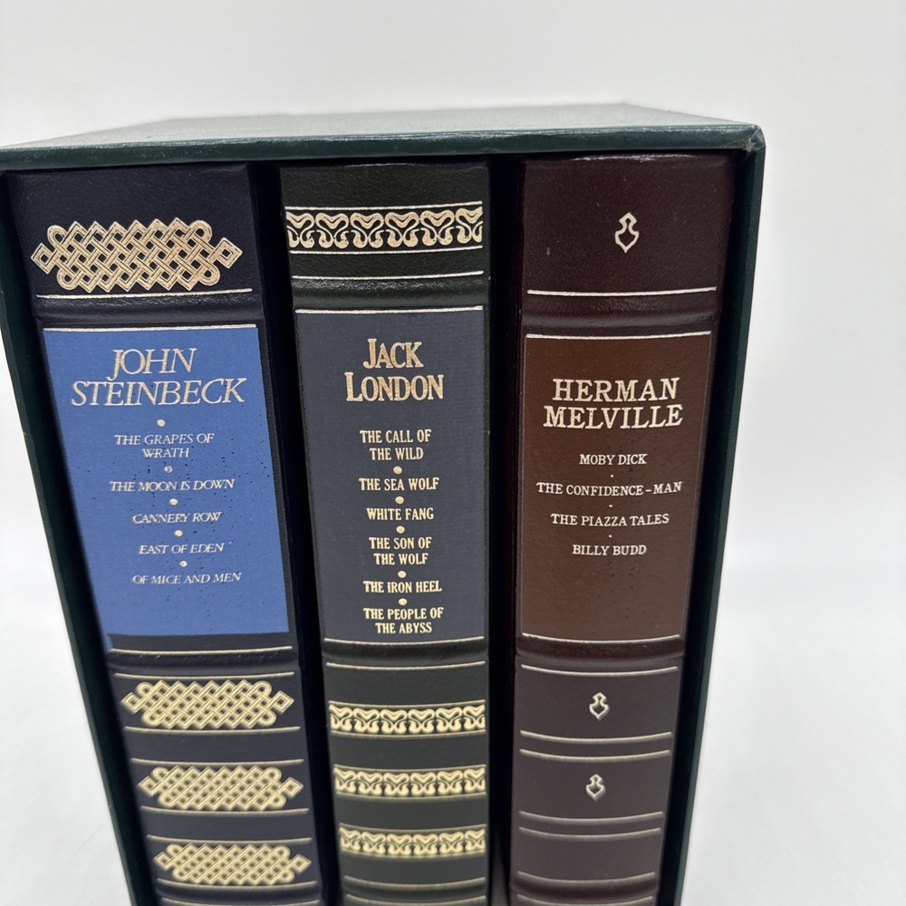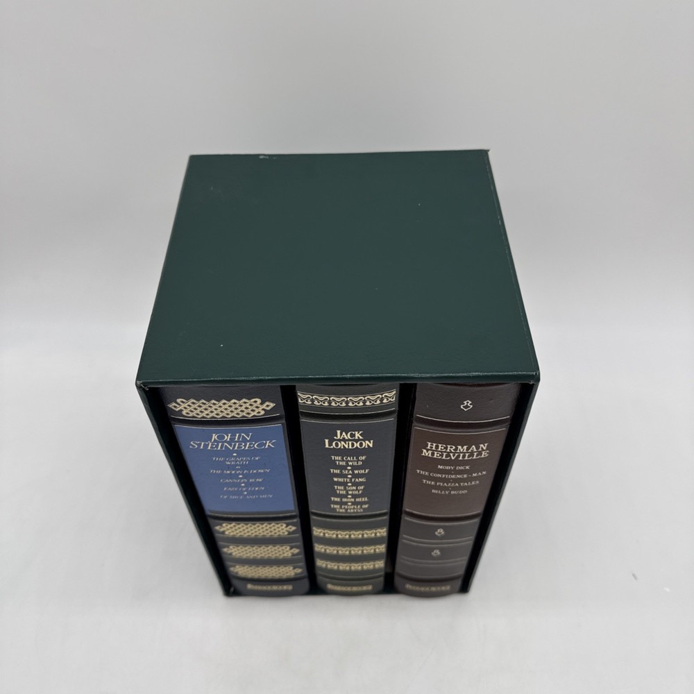 3 Volume Set of American Classics Books Edition | Steinbeck, London, Melville Some wear on the books. A few marks on the slip cover. See pictures, reach out with any questions!