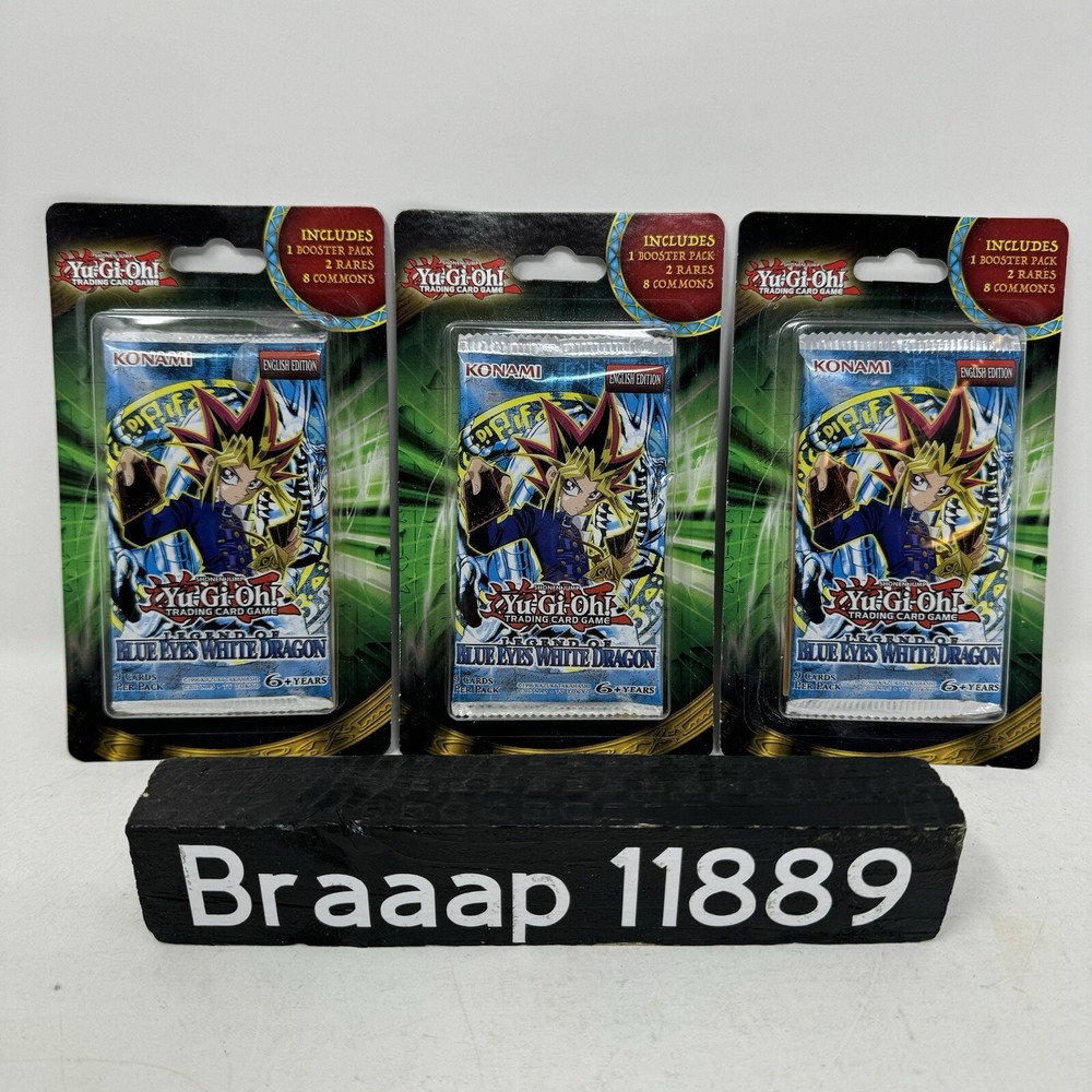 This Yu-Gi-Oh! TCG booster pack is a must-have for any collector or player. The Legend of Blue Eyes White Dragon set features 9 cards, including 2 rare ones, and is perfect for anyone aged 4 and up. The pack is in English and comes in a blister configuration, making it easy to store and display. The cards in this pack are from the 2017 manufacturer, Konami, and include features such as holo and vintage designs. With a TV show like Yu-Gi-Oh!, you know that this pack is going to be exciting for any fan of the game. Whether you're a seasoned player or just starting out, this pack is a great addition to your collection 3 sealed blister packs