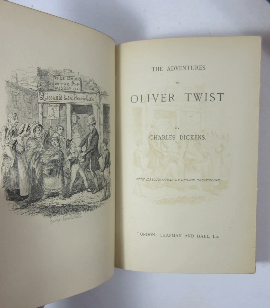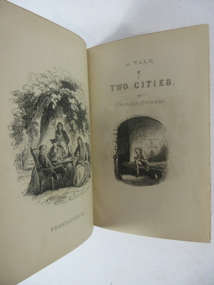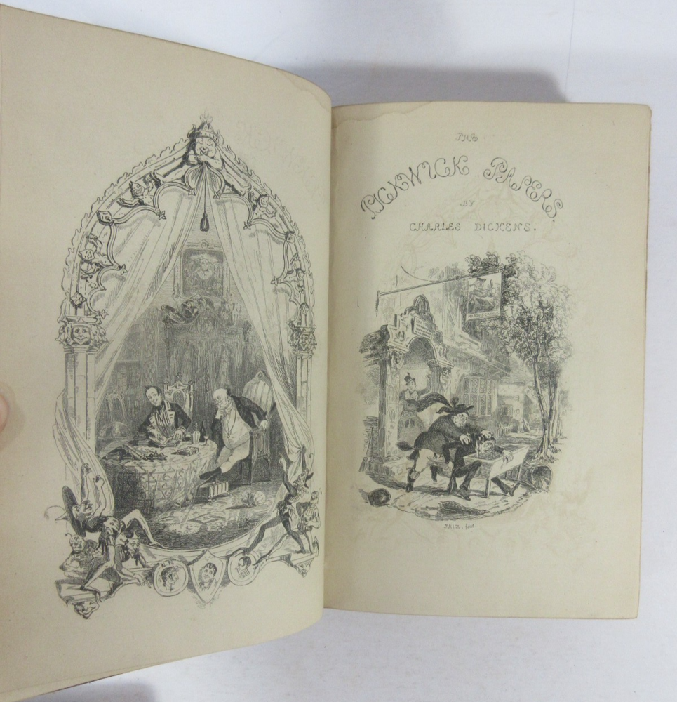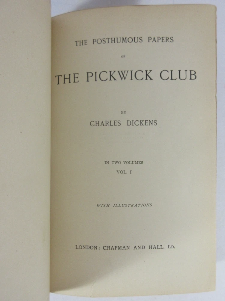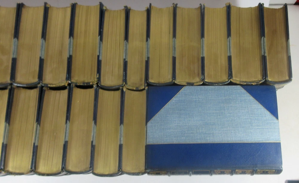 For sale is a Very Good to Very Good+ condition, 3/4 leather-bound, 30-volume set by Charles Dickens, illustrated by H.K. Browne . Undated, published in London by Chapman & Hall, ltd with (Richard Clay & Son) as well as (William Clowes and Sons). Rebound in 1/2 fine blue leather binding. Cloth boards show light shelf wear around the edges and to the corners. Pages are very good overall showing light age toning throughout. The bindings are holding sound, some open slightly easily. Please see photos for condition detail. Includes: - Pickwick Papers Vols. 1 & 2 - A Tale of Two Cities - Great Expectations - Oliver Twist - Nicholas Nickleby Vols. 1 & 2 - Old Curiosity Shop Vols. 1 & 2 - Barnaby Rudge Vols. 1 & 2 - Martin Chuzziewit Vols. 1 & 2 - David Copperfield Vols. 1 & 2 - Dombey & Sons Vols. 1&2 - Bleak House Vols. 1 & 2 - A Child's History of England - Little Dorrit Vols. 1 & 2 - Our Mutual Friend Vols. 1 & 2 - Uncommercial Traveler - Edwin Drood Etc. - Sketches by Boz - American Notes, Pictures From Italy - Christmas Stories - Christmas Books