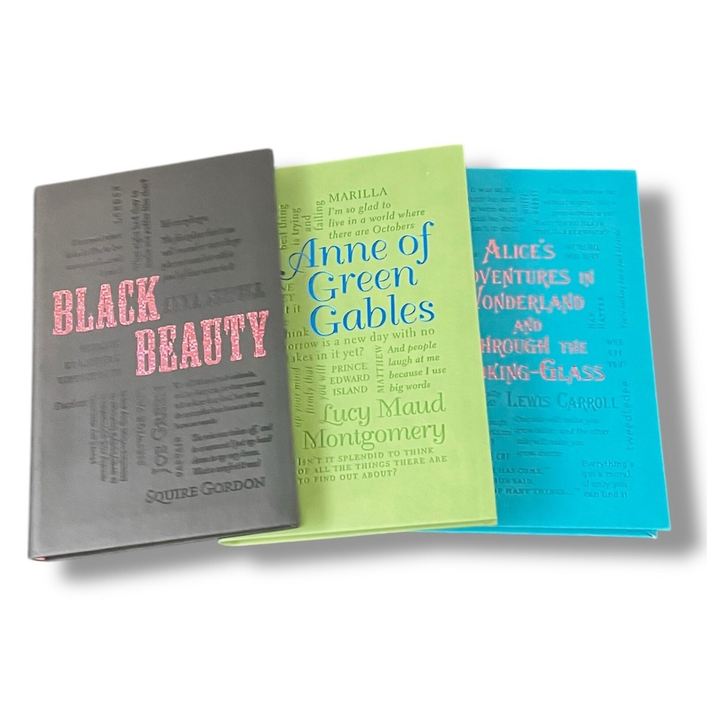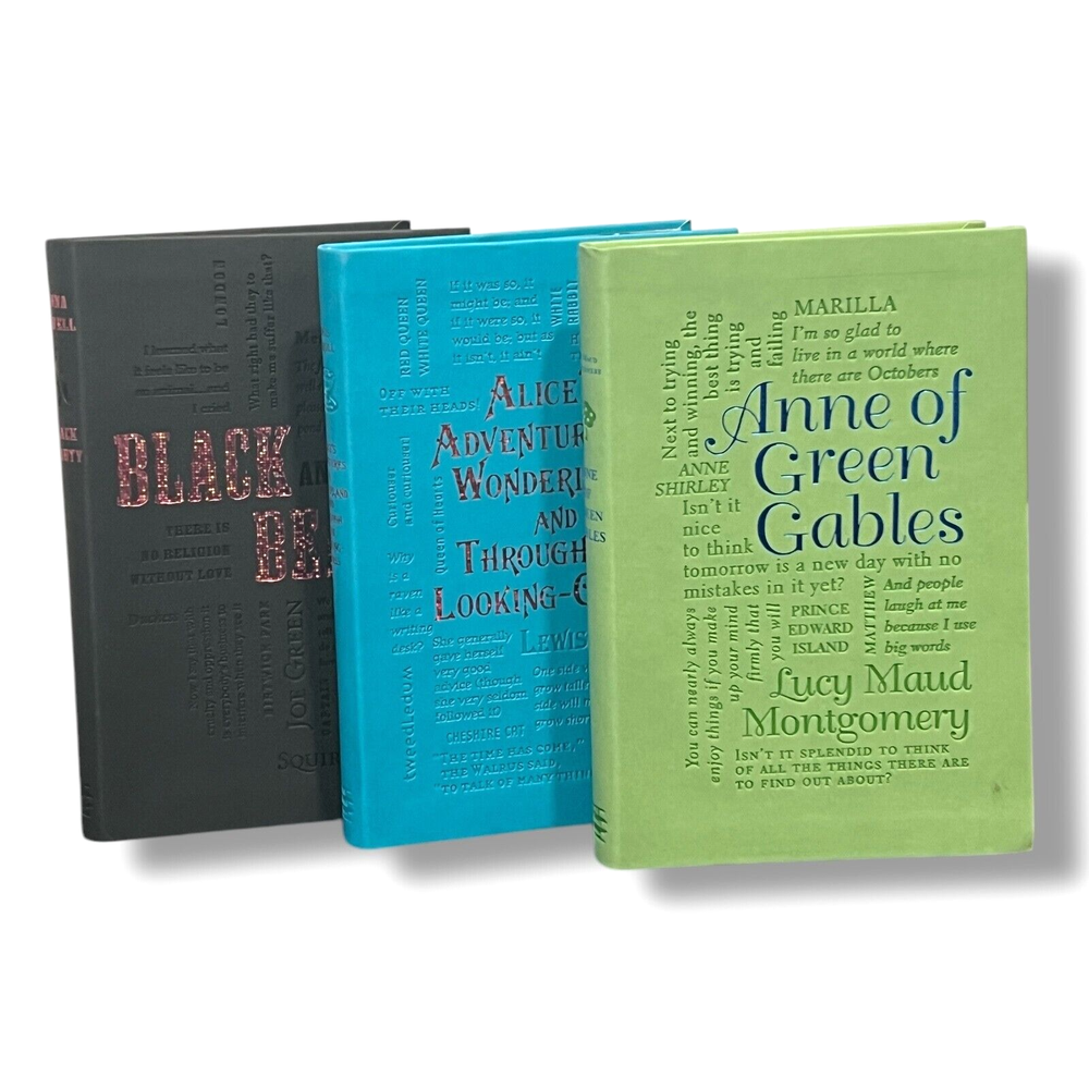 3 Book Set Books are in unread condition and have not been used. They show minor signs of shelf life, such as slight wear on edges or corners, but overall it is in excellent shape. Perfect for reading or adding to your collection! -- Alice's Adventures in Wonderland and Through the Looking-Glass Dimensions 5.00(w) x 7.70(h) x 0.90(d) -- Black Beauty Dimensions 4.90(w) x 7.60(h) x 0.70(d) -- Anne of Green Gables Dimensions 5.30(w) x 7.60(h) x 0.90(d) Language English