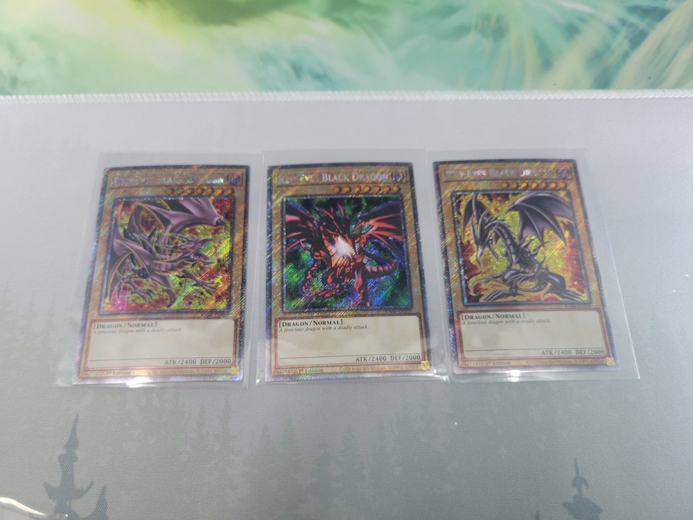The product is a 3X Red-Eyes Black Dragon Platinum Secret card from the Yu-Gi-Oh! TCG set Quarter Century Stampede. This collectible card features the iconic monster type card named Red-Eyes Black Dragon, making it a desirable addition for collectors and players alike. The Platinum Secret rarity adds a unique touch to this special playset, making it a valuable and sought-after item within the Yu-Gi-Oh! trading card game community.