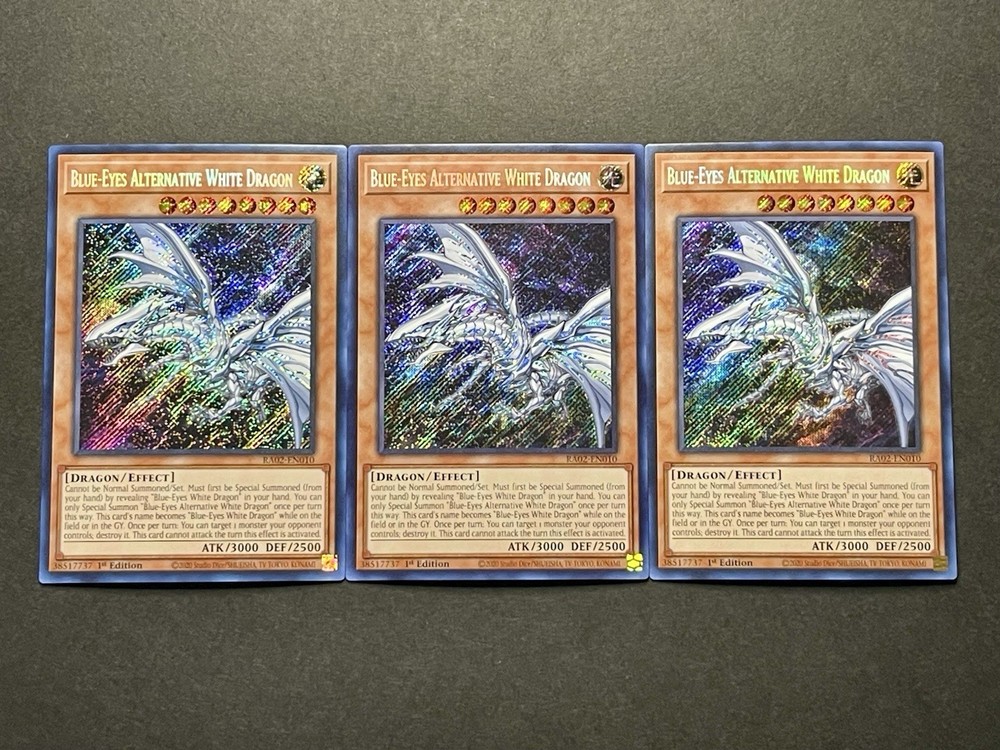 ~ Y u -G i -O h ! ~ 3 x Blue-Eyes Alternative White Dragon | RA02 -EN010 ~ - 1 st Editions ! ~ - Secret Rares ~ - Near M int ~