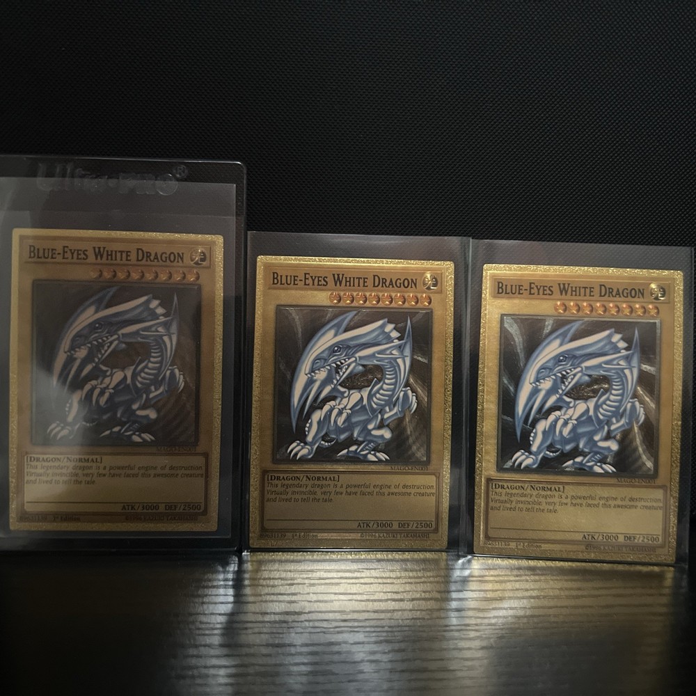 3x Classic Blue Eyes White Dragon | Collectors | Gold Promo | Orica | DIY Holo. Condition is Used. Nm-lp...