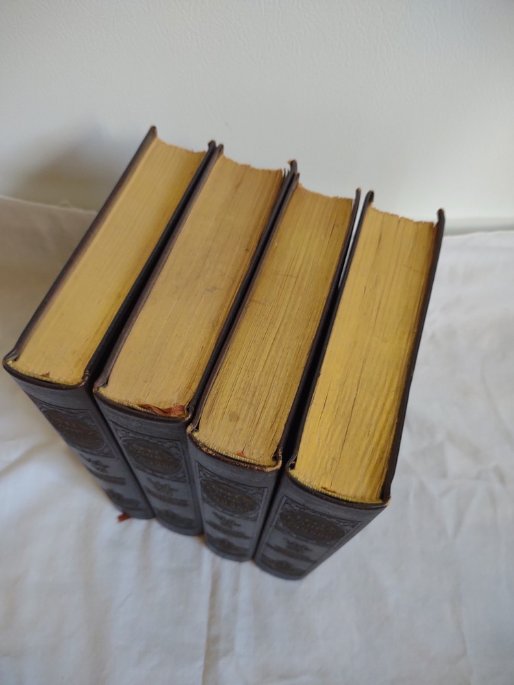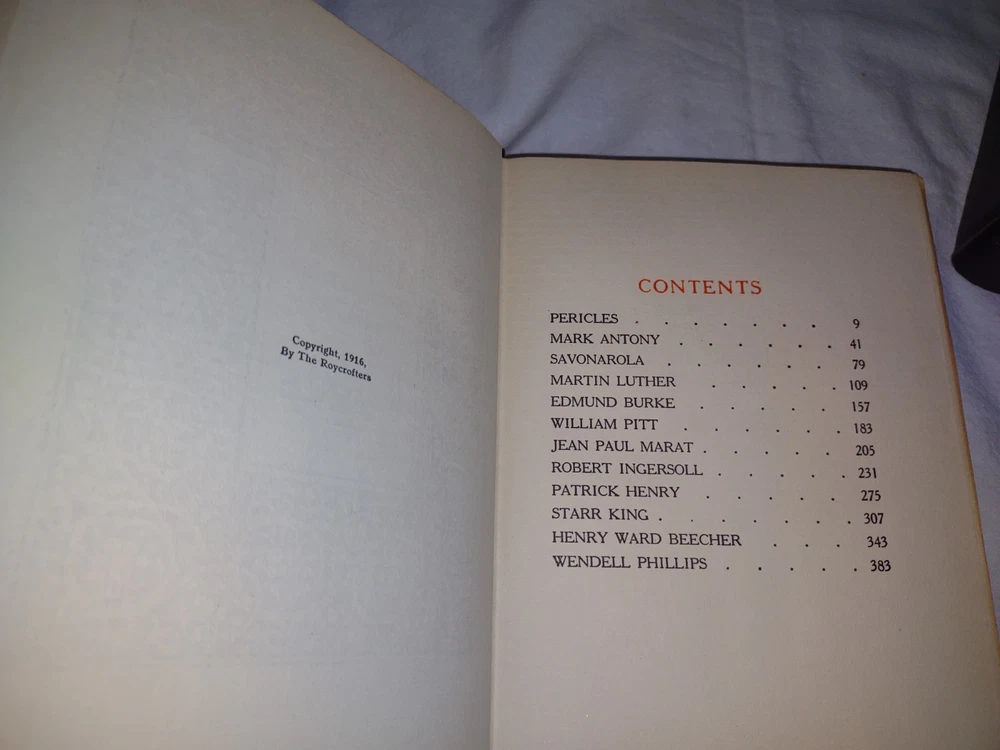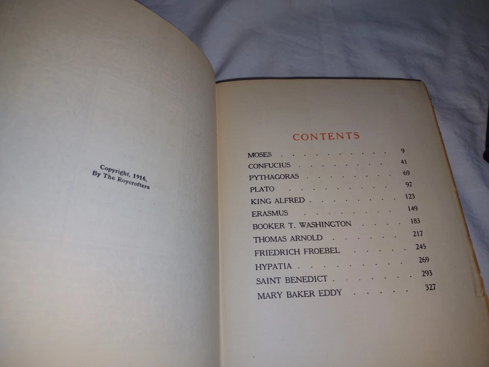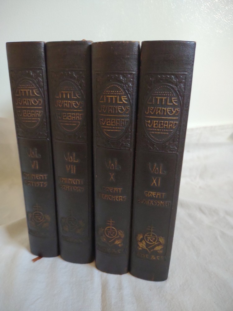 Very nice 4 piece collection Roycrofter, Elbert Hubbard, Volume VI, VII, X, XI Binding not broke, very good condition Some pages never even cut ribbon bookmarks, arts and crafts paper from wikipedia: Roycroft was a reformist community of craft workers and artists which formed part of the Arts and Crafts movement in the United States. Elbert Hubbard founded the community in 1895, in the village of East Aurora, New York, near Buffalo. Participants were known as Roycrofters. The work and philosophy of the group, often referred to as the Roycroft movement, had a strong influence on the development of American architecture and design in the early 20th century.
