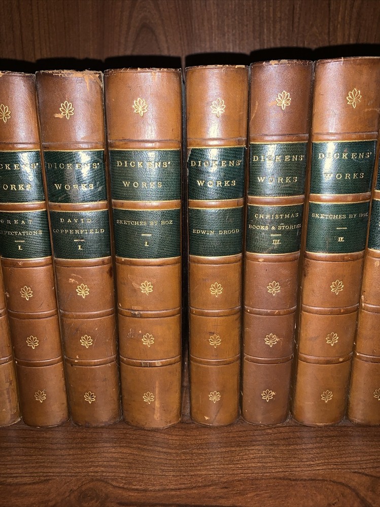 Complete 48 volume set of leather books. Author: Charles Dickens. Publisher: Dodd, Mead and Company. Publishing date: 1891. Illustrator: Marcus Stone. Subject : Charles Dickens novels. The whole set of books is in excellent condition. No damage to the spines. No tears in the leather.