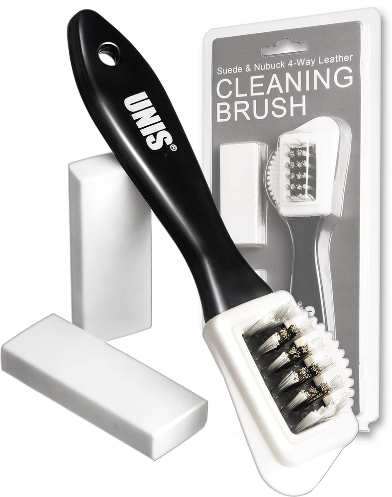 This 4-in-1 cleaning brush set from UNIS is a game-changer for suede and nubuck leather care! It effortlessly removes dirt, mud, and stains while restoring the original texture. The brass and nylon bristles tackle deep-set grime, and the included erasers are perfect for spot cleaning. Works great on shoes, jackets, and home decor—super handy and effective!