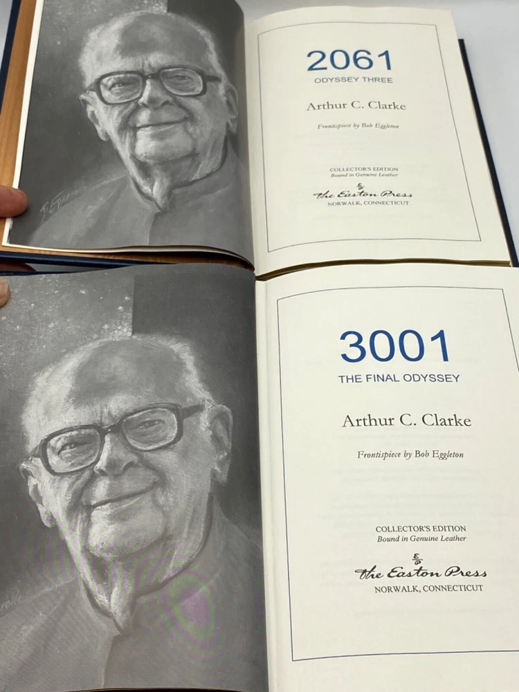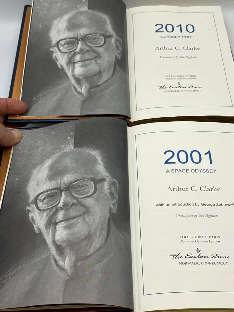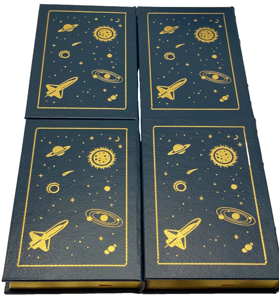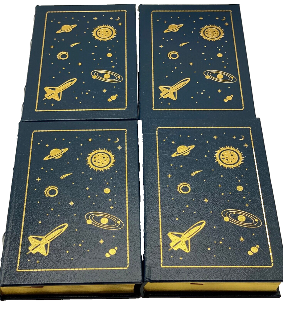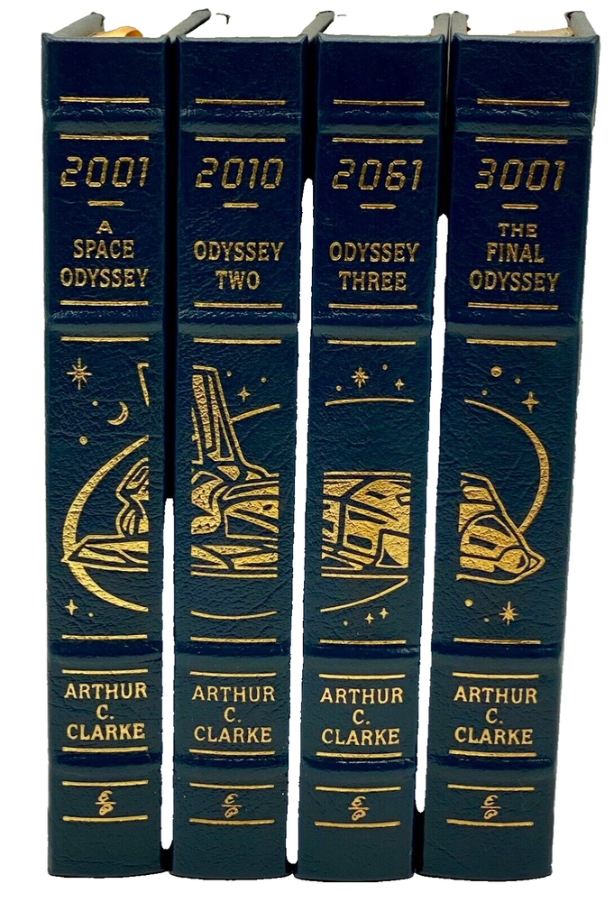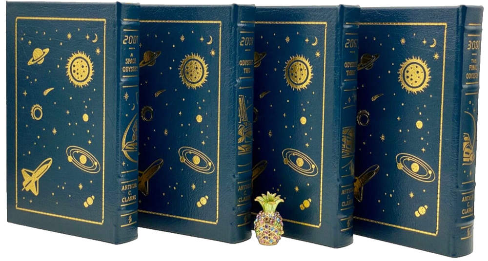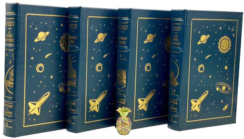 MAKES THE PERFECT GIFT FOR ANY FAN OF VINTAGE SCIENCE FICTION & FANTASY NOVELS / COLLECTIBLE LEATHER-BOUND BOOKS / ARTHUR C. CLARKE ** PLEASE READ : Mahalo for taking the time to look at our listing. We truly appreciate it. We always do our BEST to give you the most accurate description of these beautiful books. If, however, you have any SPECIFIC questions about the SIZE of the book, NUMBER of pages, TYPE of leather, SMELL or FEEL of the book, PLEASE email us through EBay’s mail system BEFORE you bid, and we will be HAPPY to give you more information. We want you to be completely happy with your purchase and keep you as our customers for years to come!** DESCRIPTION: Easton Press’s full-leather binding, LONG OUT OF PRINT COMPLETE 4V SET of 2001: A SPACE ODYSSEY by ARTHUR C. CLARKE. THIS IS A SCARCE, VERY DIFFICULT TO FIND COMPLETE VINTAGE HEIRLOOM MATCHING EASTON SET WITH DEEP LAVISH GILT IMPRESSIONS TO THE BOARDS AND SPINE with GORGEOUS FULL-COLOR VINTAGE FRONTISPIECES and BLACK & WHITE ILLUSTRATIONS . IT IS ONE OF THE MOST BEAUTIFULLY BOUND & HIGHLY-PRIZED SETS YOU CAN FIND. THE SPINES LINE UP TO DEPICT A SPACE SHUTTLE! 🍍 NOT INCLUDED... 😃 ABOUT THE SET: 2001: A SPACE ODYSSEY : The classic science fiction novel that captures and expands on the vision of Stanley Kubrick’s immortal film—and changed the way we look at the stars and ourselves . From the savannas of Africa at the dawn of mankind to the rings of Saturn as man ventures to the outer rim of our solar system, 2001: A Space Odyssey is a journey unlike any other. This allegory about humanity’s exploration of the universe—and the universe’s reaction to humanity—is a hallmark achievement in storytelling that follows the crew of the spacecraft Discovery as they embark on a mission to Saturn. Their vessel is controlled by HAL 9000, an artificially intelligent supercomputer capable of the highest level of cognitive functioning that rivals—and perhaps threatens—the human mind. Grappling with space exploration, the perils of technology, and the limits of human power, 2001: A Space Odyssey continues to be an enduring classic of cinematic scope. ——- 2010: ODYSSEY TWO : Nine years after the disastrous Discovery mission to Jupiter in 2001, a joint U.S.-Soviet expedition sets out to rendezvous with the derelict spacecraft—to search the memory banks of the mutinous computer HAL 9000 for clues to what went wrong…and what became of Commander Dave Bowman. Without warning, a Chinese expedition targets the same objective, turning the recovery mission into a frenzied race for the precious information Discovery may hold about the enigmatic monolith that orbits Jupiter. Meanwhile, the being that was once Dave Bowman—the only human to unlock the mystery of the monolith—streaks toward Earth on a vital mission of its own . . . ——- 2061: ODYSSEY THREE : Only rarely does a novelist weave a tapestry so compelling that it captures the imagination of the entire world. But that is precisely what Arthur C. Clarke accomplished with 2001: A Space Odyssey. It is even more unusual that an author is able to complement so well-received an invention with an equally successful sequel. But Arthur C. Clarke’s 2010: Odyssey Two enthralled a huge audience worldwide. Now, in 2061: Odyssey Three, Arthur C. Clarke revisits the most famous future ever imagined, as two expeditions into space are inextricably tangled by human necessity and the immutable laws of physics. And Heywood Floyd, survivor of two previous encounters with the mysterious monoliths, must once again confront Dave Bowman—or whatever Bowman has become—a newly independent HAL, and the power of an alien race that has decided Mankind is to play a part in the evolution of the galaxy whether it wishes to or not. ——- 3001: FINAL ODYSSEY : “ 3001 is not just a page-turner, plugged in to the great icons of HAL and the monoliths, but a book of wisdom too, pithy and provocative.”— New Scientist The body of Frank Poole, lost for a thousand years since the computer HAL caused his death en route to Jupiter, is retrieved, revived—and enhanced. In the most eagerly awaited sequel of all time, the terrifying truth of the Monoliths’ mission is a mystery only Poole can resolve. E rnest Hemingway (1899-1961), born in Oak Park, Illinois, started his career as a writer in a newspaper office in Kansas City at the age of seventeen. After the United States entered the First World War, he joined a volunteer ambulance unit in the Italian army. Serving at the front, he was wounded, was decorated by the Italian Government, and spent considerable time in hospitals. After his return to the United States, he became a reporter for Canadian and American newspapers and was soon sent back to Europe to cover such events as the Greek Revolution. During the twenties, Hemingway became a member of the group of expatriate Americans in Paris, which he described in his first important work, The Sun Also Rises (1926). Equally successful was A Farewell to Arms (1929), the study of an American ambulance officer’s disillusionment in the war and his role as a deserter. Hemingway used his experiences as a reporter during the civil war in Spain as the background for his most ambitious novel, For Whom the Bell Tolls (1940). Among his later works, the most outstanding is the short novel, The Old Man and the Sea (1952), the story of an old fisherman’s journey, his long and lonely struggle with a fish and the sea, and his victory in defeat. Hemingway – himself a great sportsman – liked to portray soldiers, hunters, bullfighters – tough, at times primitive people whose courage and honesty are set against the brutal ways of modern society, and who in this confrontation lose hope and faith. His straightforward prose, his spare dialogue, and his predilection for understatement are particularly effective in his short stories, some of which are collected in Men Without Women (1927) and The Fifth Col