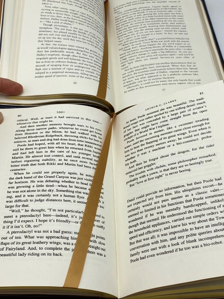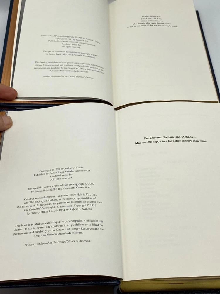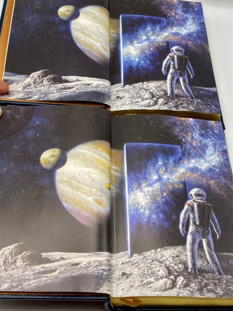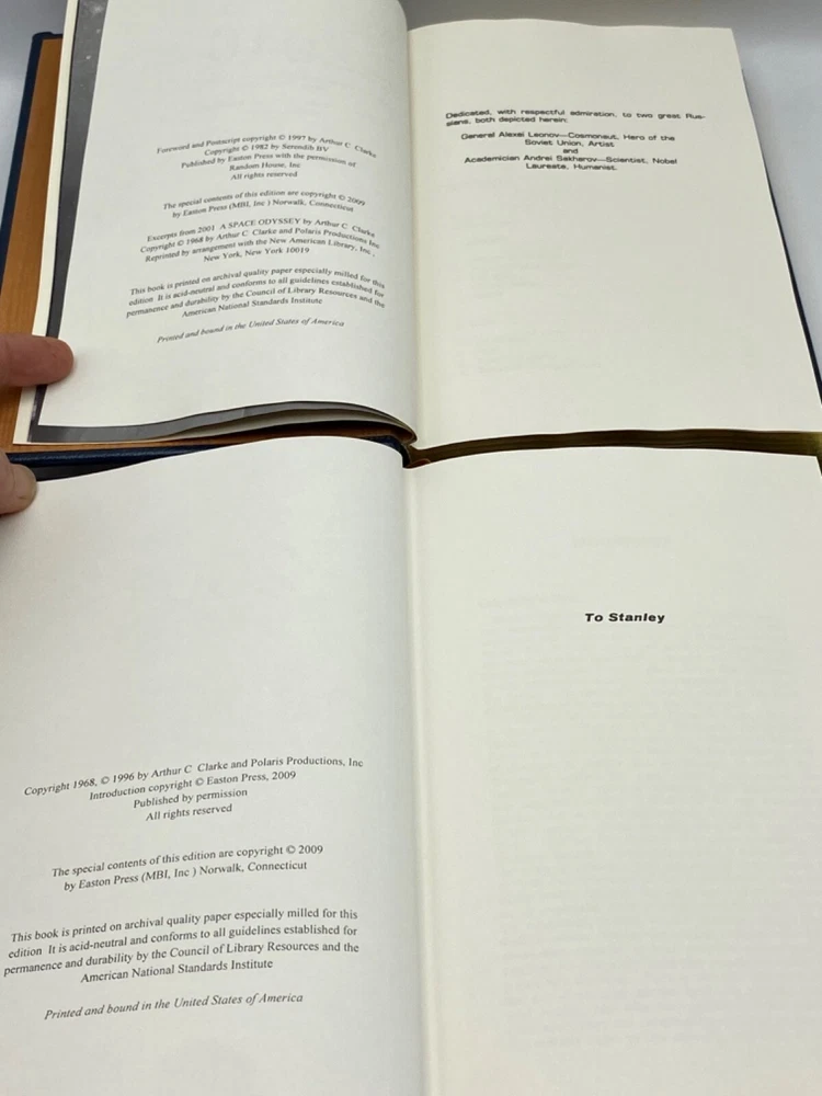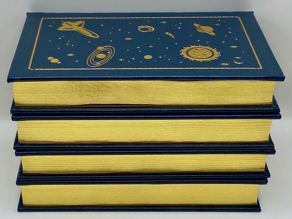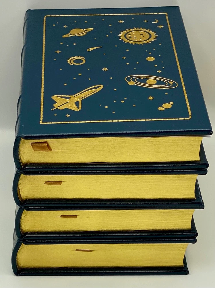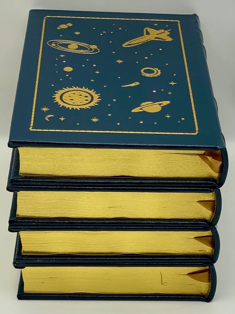 MAKES THE PERFECT GIFT FOR ANY FAN OF VINTAGE SCIENCE FICTION & FANTASY NOVELS / COLLECTIBLE LEATHER-BOUND BOOKS / ARTHUR C. CLARKE ** PLEASE READ : Mahalo for taking the time to look at our listing. We truly appreciate it. We always do our BEST to give you the most accurate description of these beautiful books. If, however, you have any SPECIFIC questions about the SIZE of the book, NUMBER of pages, TYPE of leather, SMELL or FEEL of the book, PLEASE email us through EBay’s mail system BEFORE you bid, and we will be HAPPY to give you more information. We want you to be completely happy with your purchase and keep you as our customers for years to come!** DESCRIPTION: Easton Press’s full-leather binding, LONG OUT OF PRINT COMPLETE 4V SET of 2001: A SPACE ODYSSEY by ARTHUR C. CLARKE. THIS IS A SCARCE, VERY DIFFICULT TO FIND COMPLETE VINTAGE HEIRLOOM MATCHING EASTON SET WITH DEEP LAVISH GILT IMPRESSIONS TO THE BOARDS AND SPINE with GORGEOUS FULL-COLOR VINTAGE FRONTISPIECES and BLACK & WHITE ILLUSTRATIONS . IT IS ONE OF THE MOST BEAUTIFULLY BOUND & HIGHLY-PRIZED SETS YOU CAN FIND. THE SPINES LINE UP TO DEPICT A SPACE SHUTTLE! 🍍 NOT INCLUDED... 😃 ABOUT THE SET: 2001: A SPACE ODYSSEY : The classic science fiction novel that captures and expands on the vision of Stanley Kubrick’s immortal film—and changed the way we look at the stars and ourselves . From the savannas of Africa at the dawn of mankind to the rings of Saturn as man ventures to the outer rim of our solar system, 2001: A Space Odyssey is a journey unlike any other. This allegory about humanity’s exploration of the universe—and the universe’s reaction to humanity—is a hallmark achievement in storytelling that follows the crew of the spacecraft Discovery as they embark on a mission to Saturn. Their vessel is controlled by HAL 9000, an artificially intelligent supercomputer capable of the highest level of cognitive functioning that rivals—and perhaps threatens—the human mind. Grappling with space exploration, the perils of technology, and the limits of human power, 2001: A Space Odyssey continues to be an enduring classic of cinematic scope. ——- 2010: ODYSSEY TWO : Nine years after the disastrous Discovery mission to Jupiter in 2001, a joint U.S.-Soviet expedition sets out to rendezvous with the derelict spacecraft—to search the memory banks of the mutinous computer HAL 9000 for clues to what went wrong…and what became of Commander Dave Bowman. Without warning, a Chinese expedition targets the same objective, turning the recovery mission into a frenzied race for the precious information Discovery may hold about the enigmatic monolith that orbits Jupiter. Meanwhile, the being that was once Dave Bowman—the only human to unlock the mystery of the monolith—streaks toward Earth on a vital mission of its own . . . ——- 2061: ODYSSEY THREE : Only rarely does a novelist weave a tapestry so compelling that it captures the imagination of the entire world. But that is precisely what Arthur C. Clarke accomplished with 2001: A Space Odyssey. It is even more unusual that an author is able to complement so well-received an invention with an equally successful sequel. But Arthur C. Clarke’s 2010: Odyssey Two enthralled a huge audience worldwide. Now, in 2061: Odyssey Three, Arthur C. Clarke revisits the most famous future ever imagined, as two expeditions into space are inextricably tangled by human necessity and the immutable laws of physics. And Heywood Floyd, survivor of two previous encounters with the mysterious monoliths, must once again confront Dave Bowman—or whatever Bowman has become—a newly independent HAL, and the power of an alien race that has decided Mankind is to play a part in the evolution of the galaxy whether it wishes to or not. ——- 3001: FINAL ODYSSEY : “ 3001 is not just a page-turner, plugged in to the great icons of HAL and the monoliths, but a book of wisdom too, pithy and provocative.”— New Scientist The body of Frank Poole, lost for a thousand years since the computer HAL caused his death en route to Jupiter, is retrieved, revived—and enhanced. In the most eagerly awaited sequel of all time, the terrifying truth of the Monoliths’ mission is a mystery only Poole can resolve. E rnest Hemingway (1899-1961), born in Oak Park, Illinois, started his career as a writer in a newspaper office in Kansas City at the age of seventeen. After the United States entered the First World War, he joined a volunteer ambulance unit in the Italian army. Serving at the front, he was wounded, was decorated by the Italian Government, and spent considerable time in hospitals. After his return to the United States, he became a reporter for Canadian and American newspapers and was soon sent back to Europe to cover such events as the Greek Revolution. During the twenties, Hemingway became a member of the group of expatriate Americans in Paris, which he described in his first important work, The Sun Also Rises (1926). Equally successful was A Farewell to Arms (1929), the study of an American ambulance officer’s disillusionment in the war and his role as a deserter. Hemingway used his experiences as a reporter during the civil war in Spain as the background for his most ambitious novel, For Whom the Bell Tolls (1940). Among his later works, the most outstanding is the short novel, The Old Man and the Sea (1952), the story of an old fisherman’s journey, his long and lonely struggle with a fish and the sea, and his victory in defeat. Hemingway – himself a great sportsman – liked to portray soldiers, hunters, bullfighters – tough, at times primitive people whose courage and honesty are set against the brutal ways of modern society, and who in this confrontation lose hope and faith. His straightforward prose, his spare dialogue, and his predilection for understatement are particularly effective in his short stories, some of which are collected in Men Without Women (1927) and The Fifth Col