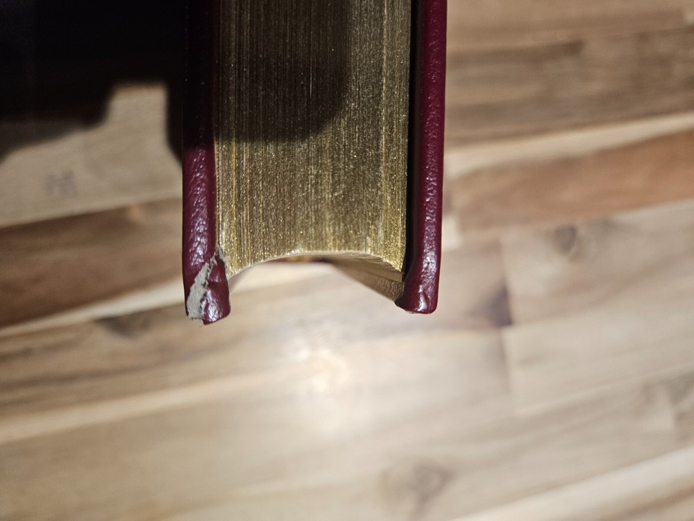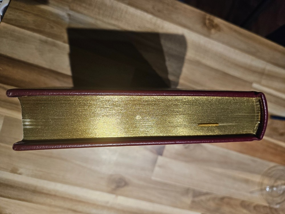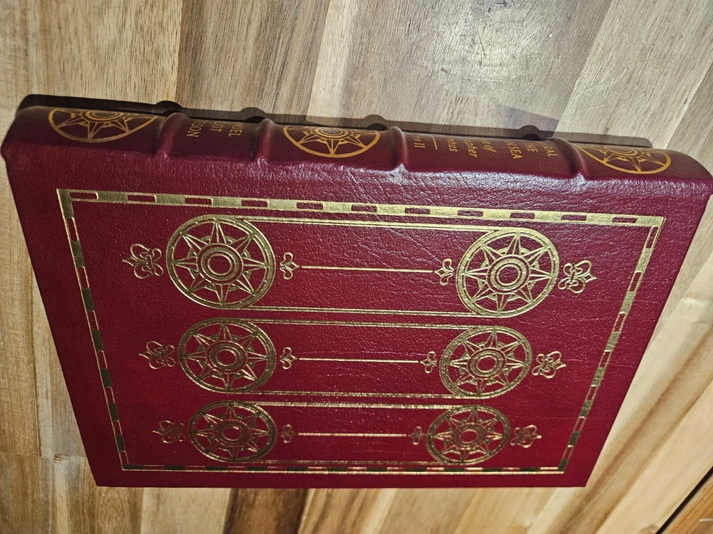 This 3-volume set commemorates the 500th anniversary of Christopher Columbus's voyage across the Atlantic Ocean. The books are bound in luxurious leather and printed by Easton Press in 1990. The set includes "The Life and Voyages of Christopher Columbus," and "Admiral of the Ocean Sea, A Life of Christopher Columbus," VOLUMES I and II. Books are in excellent condition. There appears to be one main flaw on the top front corner cover of one of the books(see picture). Some very minor wear to some of the gold edges of pages. All three books have remnants of a price tag. I am not a professional book handler so I did not want to attempt to finish peeling them off, but I believe they could come off with relative ease. Please see picture for additional information. Please also ask any questions before purchasing.