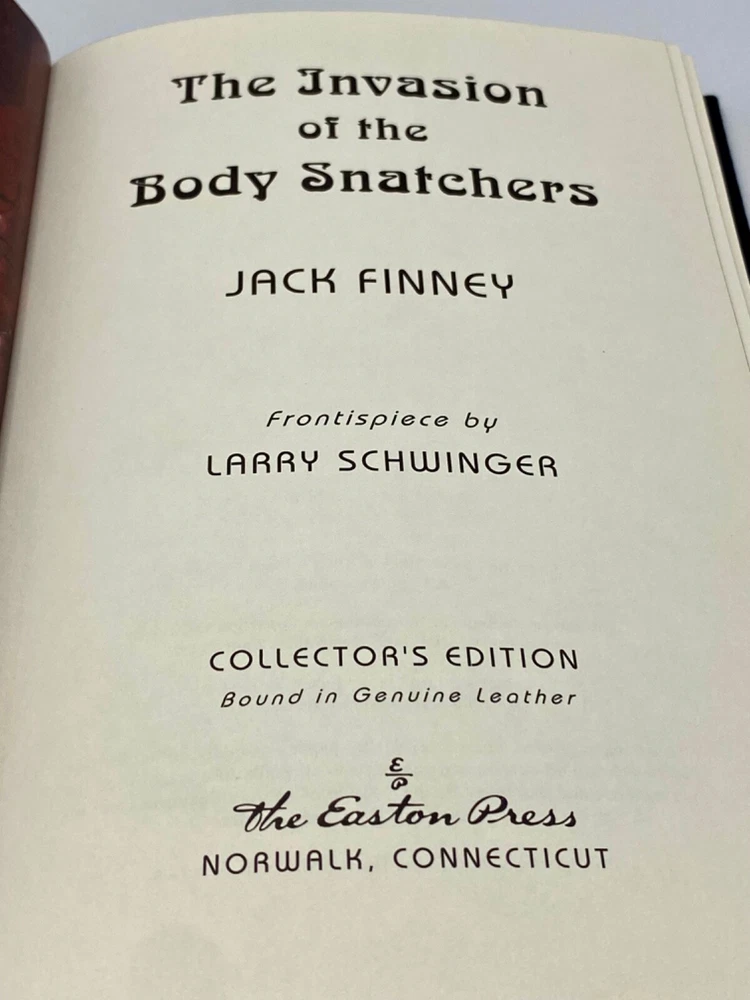 MAKES THE PERFECT GIFT FOR ANY FAN VINTAGE SCIENCE FICTION / FANTASY / JACK FINNEY / JOHN W. CAMPBELL, JR. / JOHN WYNDHAM / ROBERT A. HEINLEIN / WALTER TEVIS ** PLEASE READ : Mahalo for taking the time to look at our listing. We truly appreciate it. We always do our BEST to give you the most accurate description of these beautiful books. If, however, you have any SPECIFIC questions about the SIZE of the book, NUMBER of pages, TYPE of leather, SMELL or FEEL of the book, PLEASE email us through EBay’s mail system BEFORE you bid, and we will be HAPPY to give you more information. We want you to be completely happy with your purchase and keep you as our customers for years to come!** DESCRIPTION: This is the COMPLETE SCARCE, ONE OF THE MOST DIFFICULT TO FIND Easton Press sets, LONG OUT OF PRINT sets of THEY WALK AMONG US , including THE INVASION OF THE BODY SNATCHERS; WHO GOES THERE?; THE MIDWICH CUCKOOS; THE PUPPET MASTERS; THE MAN WHO FELL TO EARTH with GORGEOUS FULL-COLOR VINTAGE FRONTISPIECES . THIS IS ONE OF THE MOST HIGHLY-PRIZED AND MOST BEAUTIFUL EDITIONS OF EACH OF THESE CLASSICS YOU CAN FIND. ORIGINAL UNUSED, UNATTACHED BLANK BOOKPLATES ARE INCLUDED . 🍍 NOT INCLUDED… 😃 ABOUT THE BOOKS: Celebrate one of the earliest science fiction novels by rediscovering Jack Finney’s internationally acclaimed Invasion of the Body Snatchers —which Stephen King calls a story “to be read and savored for its own satisfactions.” On a quiet fall evening in the peaceful town of Mill Valley, California, Dr. Miles Bennell discovers an insidious, horrifying plot. Subtly, almost imperceptibly, alien life-forms are taking over the bodies and minds of his neighbors, friends, family, the woman he loves, and the entire world as he knows it. First published in 1955, this classic science fiction thriller about the ultimate alien invasion and the triumph of the human spirit over an invisible enemy has inspired multiple film adaptations and entertained readers for decades. This repackaged edition features a new cover by Hugo award–winning illustrator, John Picacio and a foreword by New York Times bestselling author, Dean Koontz. " Who Goes There? ": The novella that formed the basis of " The Thing " is the John W. Campbell classic about an antarctic research camp that discovers and thaws the ancient, frozen body of a crash-landed alien. The creature revives with terrifying results, shape-shifting to assume the exact form of animal and man, alike. Paranoia ensues as a band of frightened men work to discern friend from foe, and destroy the menace before it challenges all of humanity! The story, hailed as "one of the finest science fiction novellas ever written" by the SF Writers of America, is best known to fans as THE THING, as it was the basis of Howard Hawks' The Thing From Another World in 1951, and John Carpenter's The Thing in 1982. With a new Introduction by William F. Nolan, author of Logan's Run, and his never-before-published, suspenseful Screen Treatment written for Universal Studios in 1978, this is a must-have edition for scifi and horror fans! In the sleepy English village of Midwich, a mysterious silver object appears and all the inhabitants fall unconscious. A day later the object is gone and everyone awakens unharmed – except that all the women in the village are discovered to be pregnant. The resultant children of Midwich do not belong to their parents: all are blonde, all are golden eyed. They grow up too fast and their minds exhibit frightening abilities that give them control over others and brings them into conflict with the villagers just as a chilling realization dawns on the world outside . . . The Midwich Cuckoos is the classic tale of aliens in our midst, exploring how we respond when confronted by those who are innately superior to us in every conceivable way. The Puppet Masters is the Epic Battle Against Mind-Controlling Alien Invaders as Only Robert A. Heinlein, the Best-Selling Grand Master of Science Fiction, Could Tell It. “One of the most influential writers in American literature.” — The New York Times Book Review . First came the news that a flying saucer had landed in Iowa. Then came the announcement that the whole thing was a hoax. End of story. Case closed. Except that two agents of the most secret intelligence agency in the U.S. government were on the scene and disappeared without reporting in. And four more agents who were sent in also disappeared. So the head of the agency and his two top agents went in and managed to get out with their discovery: an invasion is underway by slug-like aliens who can touch a human and completely control his or her mind. What the humans know, they know. What the slugs want, no matter what, the human will do. And most of Iowa is already under their control. Sam Cavanaugh was one of the agents who discovered the truth. Unfortunately, that was just before he was taken over by one of the aliens and began working for the invaders, with no will of his own. And he has just learned that a high official in the Treasury Department is now under control of the aliens. Since the Treasury Department includes the Secret Service, which safeguards the President of the United States, control of the entire nation is near at hand. THE MAN WHO FELL TO EARTH: “Beautiful science fiction . . . The story of an extraterrestrial visitor from another planet is deigned mainly to say something about life on this one.”— The New York Times “Those who know The Man Who Fell to Earth only from the film version are missing something. This is one of the finest science fiction novels of its period.”—J.R. Dunn, author of Full Tide of Night T. J. Newton is an extraterrestrial who goes to Earth on a desperate mission of mercy. But instead of aid, Newton discovers loneliness and despair that ultimately ends in tragedy. CONDITION: Books are in essentially LIKE NEW condition for their age with only a few negligible rubs to the gilt page ends on The M