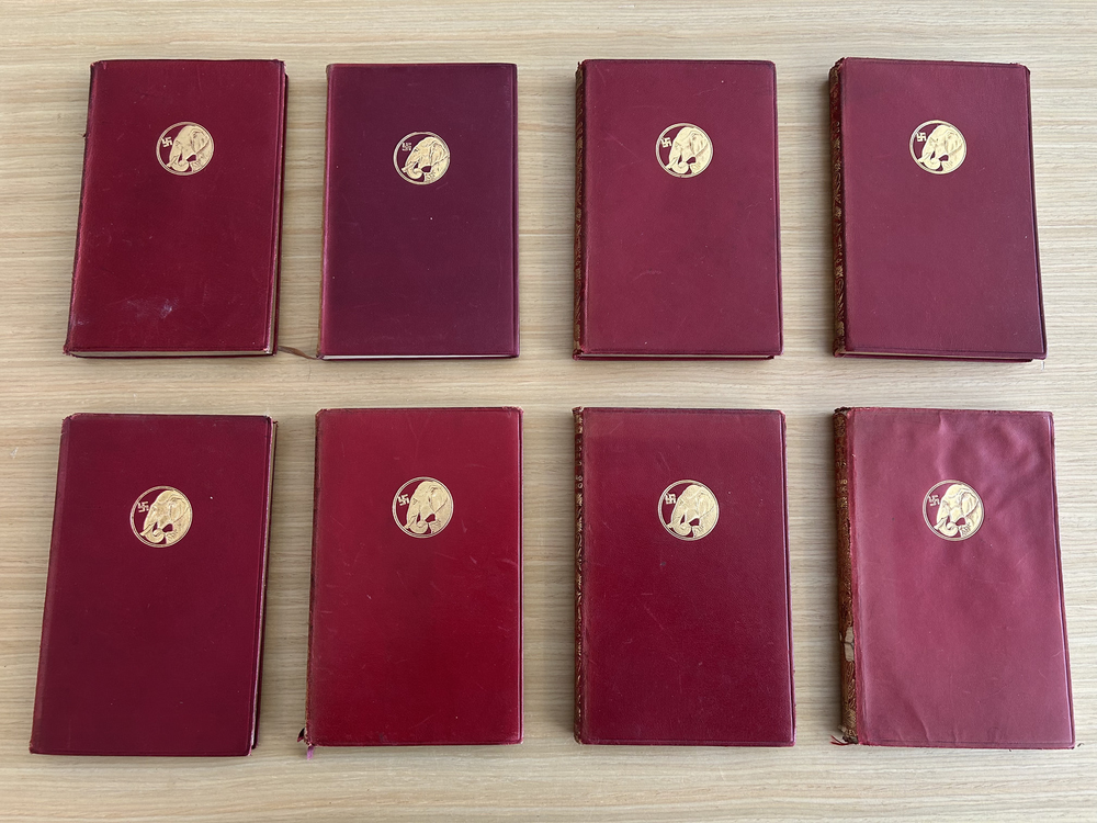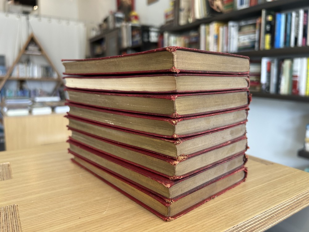 Super cool red leather pocket editions of 8 of Rudyard Kipling's books! These beauties were all published in the early 1900s (1911-1926) and are in pretty great condition for their age (check out those pics!) . They all are red leather bound with gold detailing and gold edges, and 7/8 come with a red ribbon bookmark attached. Snag this rare set NOW! (in order of 1st photo) 1. Stalky & CO. - 1912 2. Many Inventions - 1925 3. The Light That Failed - 1913 4. Life's Handicap - 1912 5. The Seven Seas - 1913 6. Wee Willie Winkie - 1911 7. Plain Tales From The Hills - 1912 8. The Five Nations - 1913 Ships in 24 hours via USPS Shipping!!