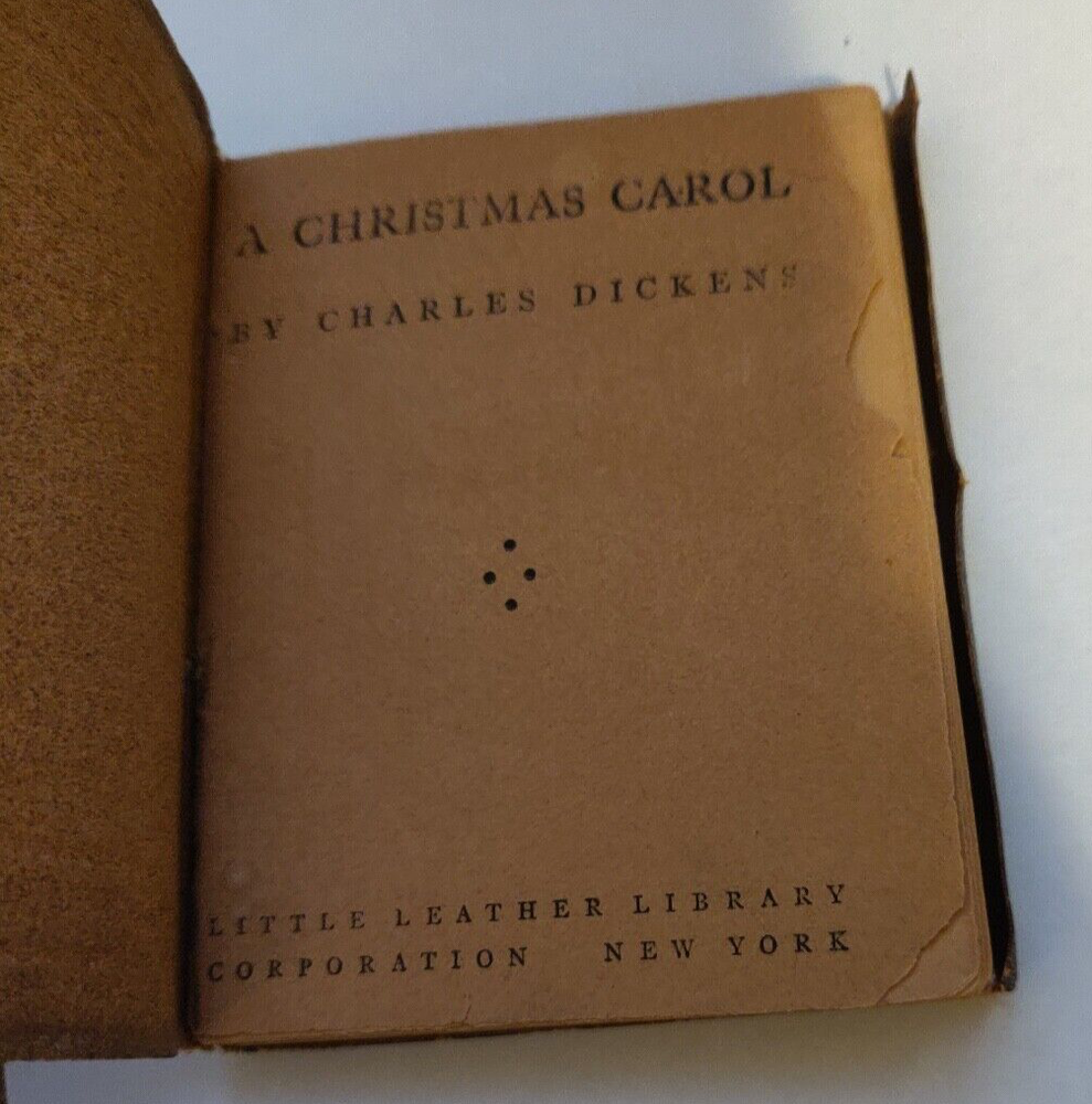 A Christmas Carol Charles Dickens Little Leather Library Redcroft Miniature Book Book measures approximately 3" x 4" and is in good used condition with some signs of age, use, and wear; age related toning to pages, please see pics for details. Will be shipped in padded envelope with extra bubble wrap.