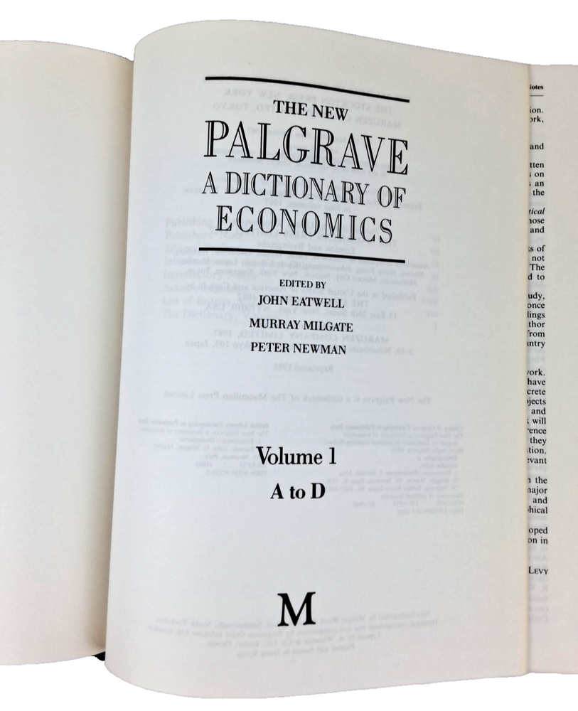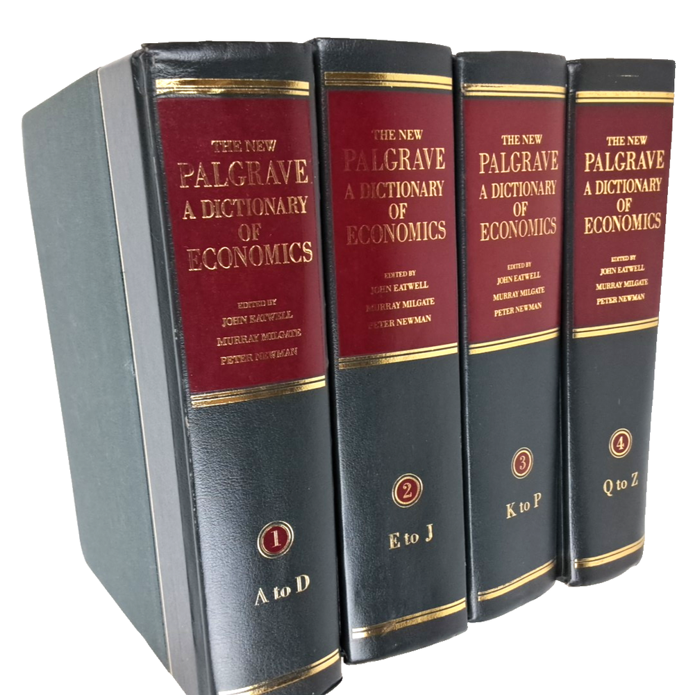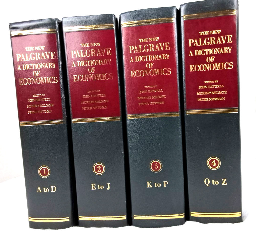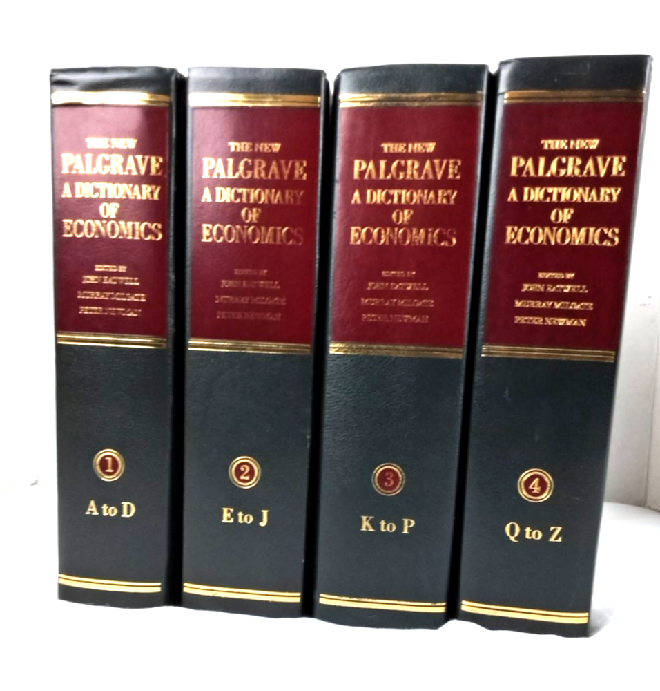 Vintage four-volume set titled "The New Palgrave: A Dictionary of Economics" by John Eatwell, originally published in 1988. Contents: Volume 1: A to D Volume 2: E to J Volume 3: K to P Volume 4: Q to ...