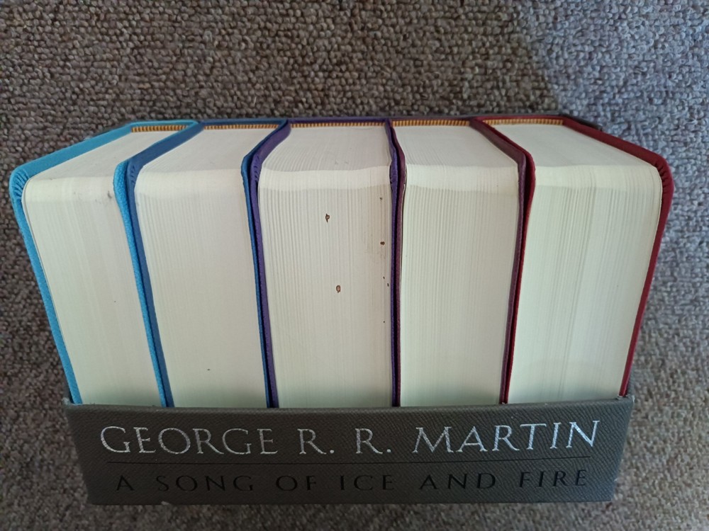 | Book Title | George R. R. Martin's a Game of Thrones Leather-Cloth Boxed Set (Song of Ice AndFire Series) : A Game of Thrones, a Clash of Kings, a Storm of Swords, a Feast for Crows, and ADance with Dragons |