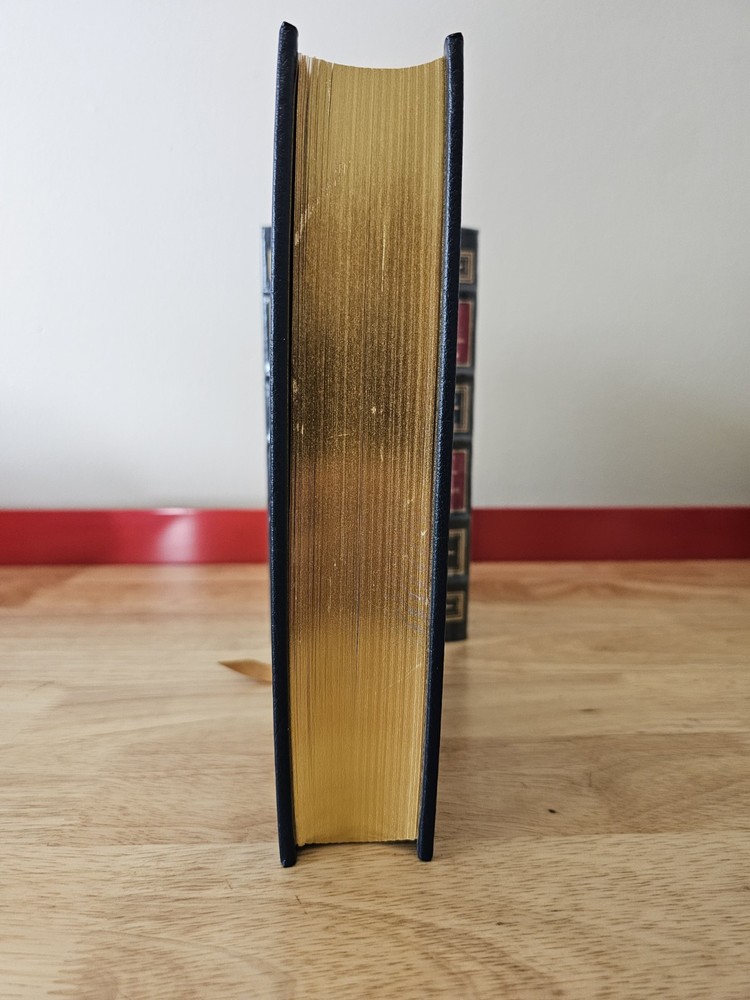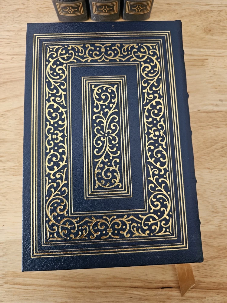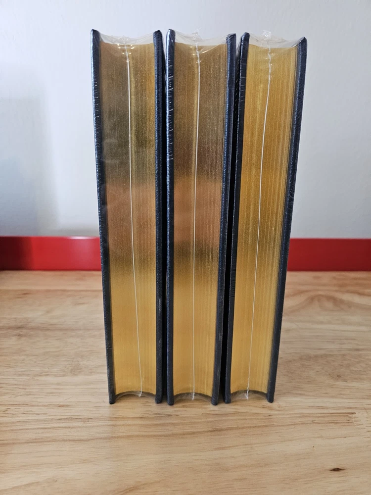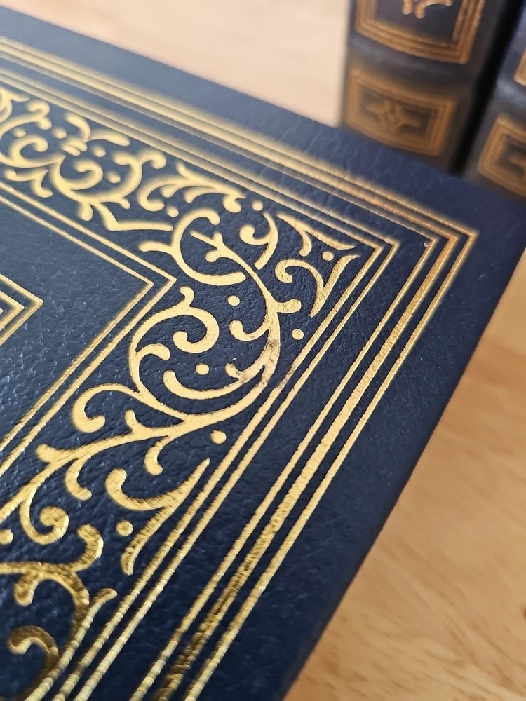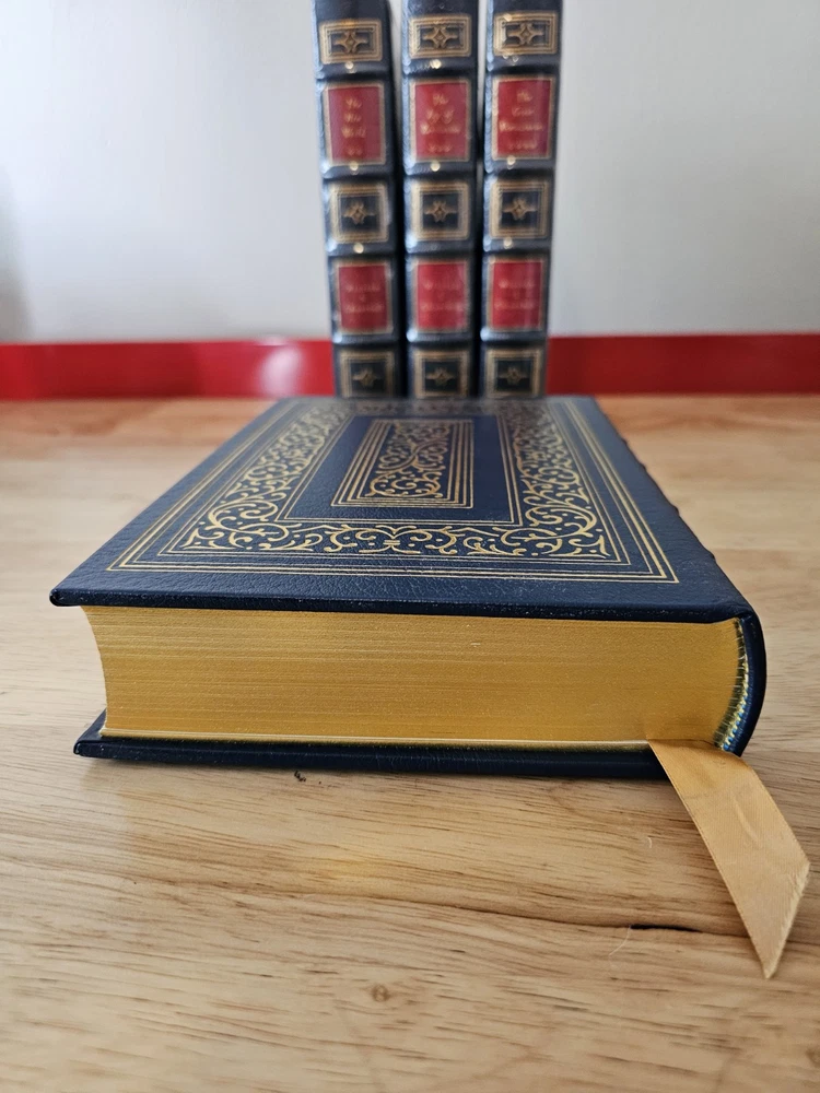A History of the English-Speaking People's 4 volume Set by Winston S. Churchill by Easton Press 1992. The first volume is open and has "glint loss" of the gold. I've photographed all imperfections. Book does not come with a book plate, book plate is not attached to book. Other than glint loss book is in good condition. Other 3 volumes are NEW and in original shrink wrap. See all photos as this is the item you will receive.