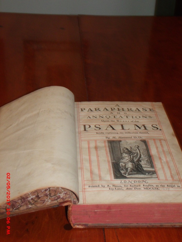 The product is a beautifully bound leather copy of "A Paraphrase and Annotations Upon The Books of The Psalms" by Henry Hammond, first published in 1659 in London. This 756-page book, written in English, is a first edition and is a valuable addition to any collection focusing on religion and spirituality. The detailed annotations and paraphrased content provide insight into the religious beliefs and practices of the time, making it a coveted piece for those interested in the history of religious texts. Whole and complete Royston edition in a leather spine 19th century binding.