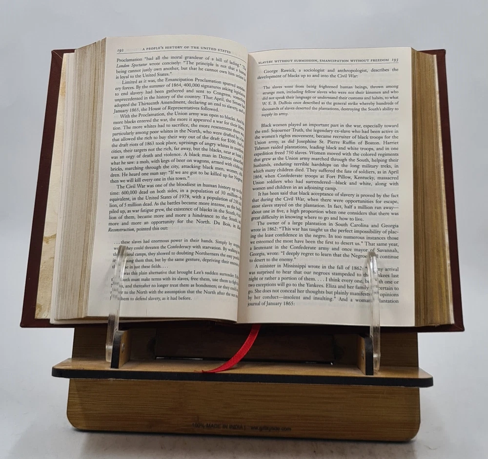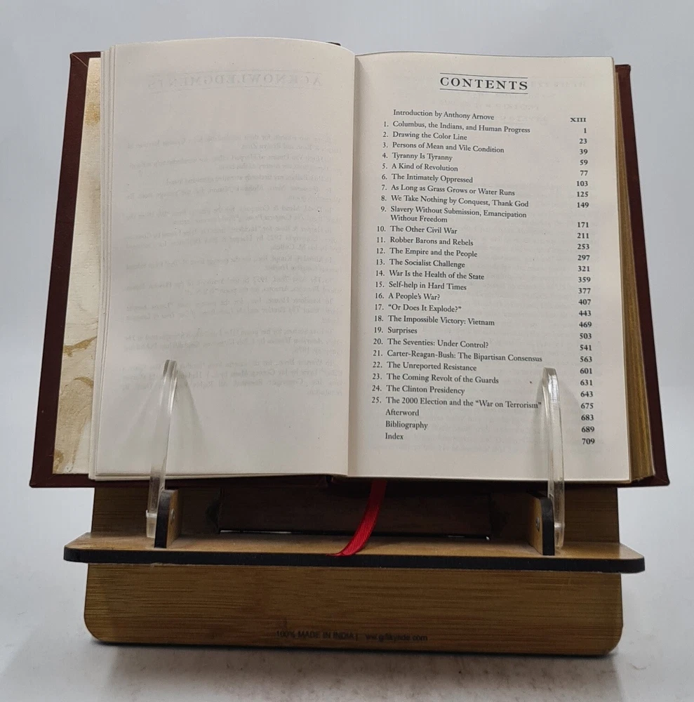 GYAN BOOKS INTRODUCING A REMARKABLE LEATHER-BOUND EDITION, METICULOUSLY CRAFTED BY THE ESTEEMED INSTITUTION " RARE BIBLIO". This title holds the distinction of being a Bestseller, highly praised by readers across the GLOBE. We are thrilled to present this literary gem exclusively to our elite readers, meticulously encased in our one-of-a-kind Premium Leather Binding . Following your order, we purchase the book from the original publisher/distributor and embark on the process of rebinding to elevate this book to a Luxurious Reading Style. A UNIQUE LEATHER-BOUND BOOK FOR ELITE READERS/COLLECTORS OF OLD RARE AND BESTSELLING BOOKS. For the Binding, we use GENUINE LEATHER , graced with opulent GOLDEN LEAF DETAILING on the SPINE , FRONT COVER , AND BACK COVER , ADDED BY EDGE GILDING . ABOUT US ★ We deal into reprinting of the master pieces crafted by authors around the world. ★ We are proud to say that we have a collection of over 25 million books and our collection includes books that are as old as 200 years and hence are considered as RARE BOOKS. ★ We are pioneer in this field having experience of 40 years. ★ We also undertake printing and Leather Binding jobs of other books. ★ Thesis printing and Leather Binding is one of our important Service ★ Many publishers and author approach us for their books to bind in our Unique leather binding format for their special customers. ★ Our craftsmen are active in this job since generations. ★ Restoration of old books is our expertise ★ We are known by our Customization options. ★ We have many leather color options in our bucket. ★ The whole process is done manually so that it gives you the same feeling of old book. OFFERS & SPECIALIZATION: ★ SPECIAL DISCOUNT FOR BULK ORDERS, PLEASE CONTACT US. ★ CHOOSE ANY LEATHER COLOR OF YOUR CHOICE WITHOUT ANY EXTRA CHARGES, JUST CLICK ON IMAGES FOR OPTIONAL COLORS AND INFORM US YOUR CHOICE THROUGH MAIL WITH COLOR CODE. ★ WE OFFER A DIVERSE RANGE OF LEATHER COLORS, INCLUDING RED , GREEN , BLUE , BLACK, MAGENTA , YELLOW , TAN . WE ALSO OFFER MULTI-COLOR LABELS WITH THESE BEAUTIFUL BOOKS ON SPECIAL REQUEST. ★ AN ORIGINAL LEATHER IS BEING USED FOR BINDING THIS BOOK WITH GOLDEN LEAF PRINTING AND DESIGNING ON SPINE, FRONT AND BACK OF THE BOOK WITH EDGE GILDING . Points to note before booking order: ★ In case of multi volume sets, please note that the above listing is for a single volume only. (To order multiple volumes, please contact us separately). ★ We urge you to appreciate that our Leather-Bound Books are Genuine works of art and are Handcrafted by our Professional Craftsmen. Thus, requiring time and care to reach the pinnacle of excellence. ★ We Prepare the Book after receiving the Order. ★ We usually take 30 business days as handling time to dispatch shipment. ★ We request you to understand that these leather-bound books are work of art and hence require time to go through different process to be the master pieces that they are. ★ We usually take 30 business days as handling time to dispatch shipment. We consider special request for a special occasion. ★ Craftsman based in India, prepared this book and shipped from different stock locations around the Globe. Product Details: - ★ Complete Title: A People's History of the United States by Zinn, Howard [PREMIUM LEATHER BOUND] ★ Author: Zinn, Howard ★ Language: English ★ No. Of Pages: 784 ★ Year: 2015 ★ We provide ?Extra customization*? on request with additional charges. ★ We also undertake printing and Leather Binding of all the books. ★ Product Disclaimer: Please be aware that because leather is a natural material, slight discoloration or change in texture may be visible. About the Book: - THE CLASSIC NATIONAL BESTSELLER"A wonderful, splendid book--a book that should be read by every American, student or otherwise, who wants to understand his country, its true history, and its hope for the future." -Howard FastHistorian Howard Zinn's A People's History of the United States chronicles American history from the bottom up, throwing out the official narrative taught in schools--with its emphasis on great men in high places--to focus on the street, the home, and the workplace.Known for its lively, clear prose as well as its scholarly research, it is the only volume to tell America's story from the point of view of--and in the words of--America's women, factory workers, African-Americans, Native Americans, the working poor, and immigrant laborers. As Zinn shows, many of our country's greatest battles--the fights for a fair wage, an eight-hour workday, child-labor laws, health and safety standards, universal suffrage, women's rights, racial equality--were carried out at the grassroots level, against bloody resistance. Covering Christopher Columbus's arrival through President Clinton's first term, A People's History of the United States features insightful analysis of the most important events in our history. This edition also includes an introduction by Anthony Arnove, who wrote, directed, and produced The People Speak with Zinn and who coauthored, with Zinn, Voices of a People's History of the United States.