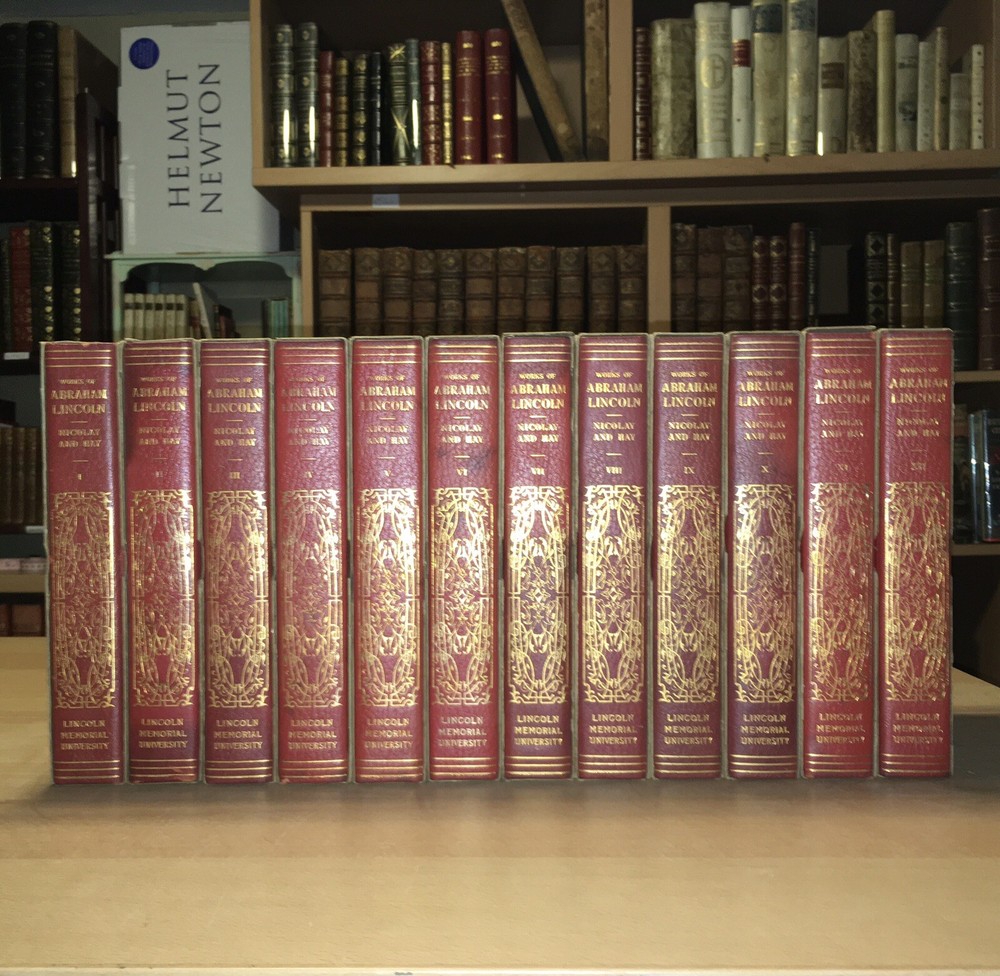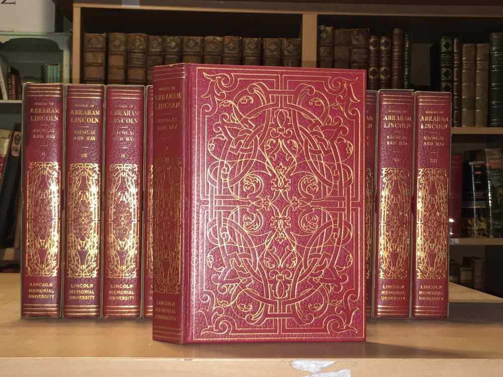 ABRAHAM LINCOLN 1894 Leather Set Nicolay Hay CIVIL WAR Antique Books Fine Cond. Fine condition. Bound in full Leather, luxury edition with full gilt decoration on front covers. Housed in their original shipping slipcases, which are now beginning to deteriorate. Books are unread, and outside of some darkening on spines, set is perfect. Illustrated with images of Lincoln and folding facsimiles of original writings. Complete in 12 volumes. Hand numbered 326. Track Page Views With Auctiva's FREE Counter