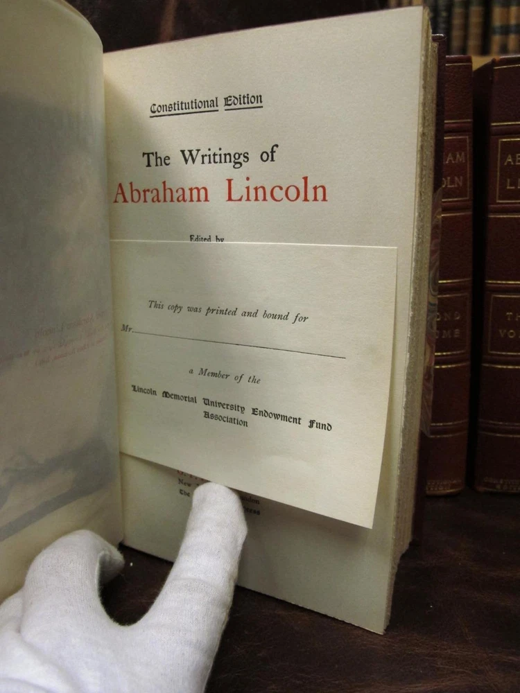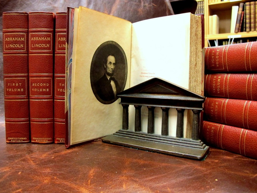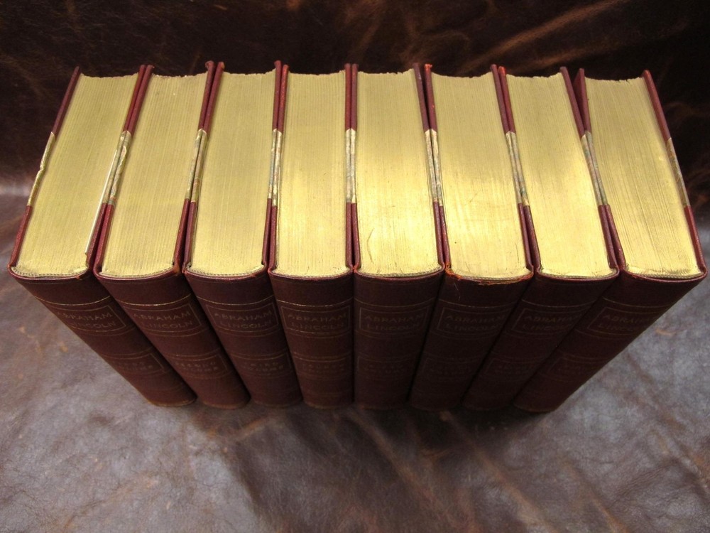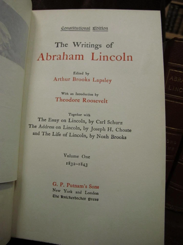 The Writings of Abraham Lincoln Constitutional Edition. Published by G. P. Putnam's Sons of New York and London--The Knickerbocker Press. Edited by Arthur Brooks Lapsley. Introduction by Theodore Roosevelt. Printed in 1905. Near fine condition! Interiors in fine condition, and appear unread. Bound in three quarter leather over marbled paper boards. Top edges gilded with rough cut outside edge. Leather looks fantastic for age with only the lightest shelf wear, but still in much better than expected condition for age. ABRAHAM LINCOLN WORKS Leather Set Constitutional Edition Antique Books Writings ABRAHAM LINCOLN WORKS Leather Set Constitutional Edition Antique Books Writings Click images to enlarge Description The Writings of Abraham Lincoln Constitutional Edition. Published by G. P. Putnam's Sons of New York and London--The Knickerbocker Press. Edited by Arthur Brooks Lapsley. Introduction by Theodore Roosevelt. Printed in 1905. Near fine condition! Interiors in fine condition, and appear unread. Bound in three quarter leather over marbled paper boards. Top edges gilded with rough cut outside edge. Leather looks fantastic for age with only the lightest shelf wear, but still in much better than expected condition for age. Payment PayPal preferred. We also accept: Propay, all major credit cards, bank transfers, and direct payment for local pickup. Not all transactions are eligible for alternative payment methods, so please email us first to clarify. Shipping We take pride in making sure your items arrive in excellent condition. All items are bubble wrapped and packaged tightly. Most items are shipped in a brand new cardboard box. Single volumes shipped in a "Flat Rate Envelope" will be very well protected, wrapped with extra bubble wrap, and secured with cardboard on both sides. Terms of Sale All Sales are NOT final! Changed your mind? Item just not what you were expecting? Don't worry, all our items are returnable. We all know buying online, before actually holding something with your own hands, can be difficult, that is why we decided to offer our, no questions asked money back guarantee. More details in the returns section. About Us Edition Deluxe Rare Books is owned and operated by Andrew Strom in Portland, Oregon. Full time professional rare book seller since 2007, and member of CBA (Cascades Booksellers Association). Our store is open by appointment only. Contact Us Please feel free to email with any questions and or concerns. Use the "Ask Seller Question" button (bottom left below description). Pictures sell! Auctiva offers Free Image Hosting and Editing. 300+ Listing Templates! Auctiva gets you noticed! Attention Sellers - Get Templates Image Hosting, Scheduling at Auctiva.com. Track Page Views With Auctiva's Counter
