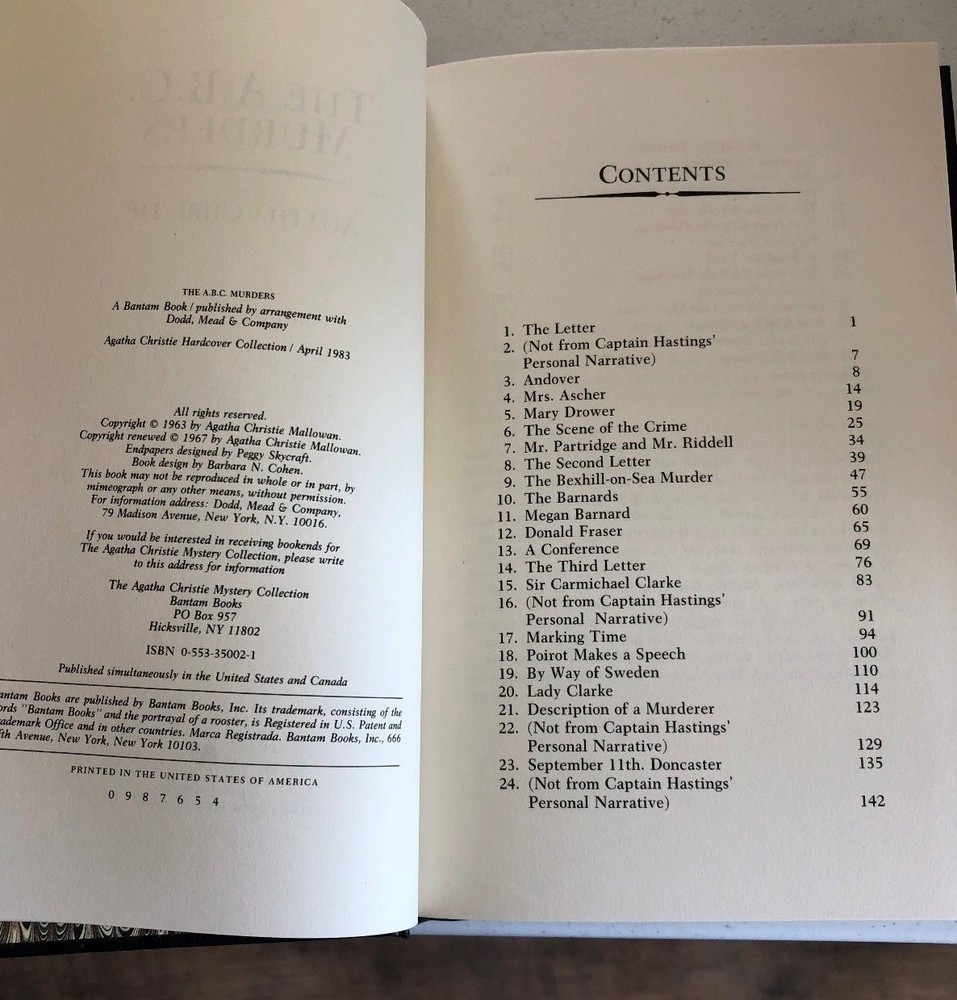 Item: Book (series) - Agatha Christie Mystery Collection Title: Murder on the Orient Express by Agatha Christie C. 1983 207 pages Publisher: Bantam - New York Hard to find edition of this highly sought after Series Condition: Excellent (Near Fine) - Not Sure if it was read Blue Leather (Faux Leather) Gilt Binding Very Light Wear from storage and moving. Clean and Complete. Please review the pics and grade for yourself Don't let someone else buy this and let this one slip by fans/collectors!! This one is looking for a good home and would look great in your library! Note: You are buying, bidding or making an offer on the item listed in the title of this listing and description above. If multiple cards/items are shown - they are in separate listings. Scans/Photos of the actual items are shown. The A.B.C. Murders Dust-jacket illustration of the first UK edition Author Agatha Christie Cover artist Not known Country United Kingdom Genre Crime novel Publisher Collins Crime Club Publication date 6 January 1936 Media type Print (hardback and paperback) Pages 256 first edition, hardback ISBN 978-1-57912-624-7 Preceded by Death in the Clouds Followed by Murder in Mesopotamia (Thanks wiki) You can check the flea markets, shows and shops. Risk losing a last second auction, if another one is ever available... OR If you really want it, I'll send it from my library to yours for the price listed All reasonable offers considered - Click on the 'make an offer' button and feel free to negotiate - however, other people interested can still purchase the item pending my reply... just wanted to clarify that because it's happened several times Be the only 'kid' in your block/state to have this one Looking for something to enhance your collection? Trying to find that gift for a family member or close friend? Save me as a favorite seller! I'll always be listing new Items weekly: Antiques, Cards, books, comics, mags, music, games, older and newer releases, etc... Listing are sometimes a little less descriptive than what I usually do in order to get more posted - Please ask if you have any questions I’ve bought and sold on eBay since 1997 – collecting and selling just about everything – if you’re looking for something let me know, I’m preparing to downsize portions of my collections and a large portion of my proceeds will be going to my daughter’s (aka: Little Nubby) college fund. Please check out my eBay store. Many great and interesting items will be listed… I treat everyone fairly and my feedback shows that. Special requests, wish lists and all inquiries will be answered to the best of my ability. I may not an absolute expert on anything, but I’m pretty knowledgeable about a lot of things…. Shipping Notes: - I try to get everything out the next available postal day after payment clears, but my ‘day job’ is very hectic and chaotic from time to time so there might be a couple days delay until I can get to the post office. Further with the Federal closing of smaller post offices (mine included), it might take a couple extra days to arrive. - If you need it quickly, just ask and I usually have no problem accommodating your wishes. - I combine shipping. For cards it’s normally $0.50 for each card purchased after the first for US or Canadian shipping to cover packaging and card protector costs. If you buy a good number of things I will usually offer free shipping. - I sell and ship internationally. Shipping rates vary due to location of where the item is being sent. If I offer free shipping on any items it is for the United States only unless noted. Other Legal-eze: - I offer a money back guarantee provided I get the item back in the condition it was sent and it’s within 30 days of receipt of said item. - Payment must be made thru Paypal (per eBay). Unless you are local and can pick the item up. There are other arrangements that can be made if necessary – feel free to ask. Happy Hunting and Thank You for your time looking at my ‘trinkets’! INV# TCH82-1HumSoLEB Powered by eBay Turbo Lister The free listing tool. List your items fast and easy and manage your active items.