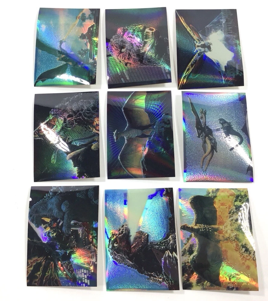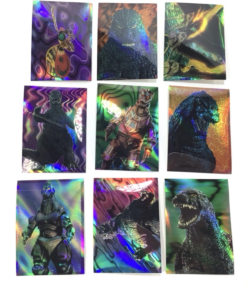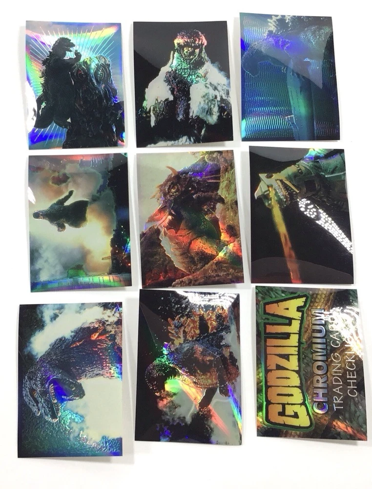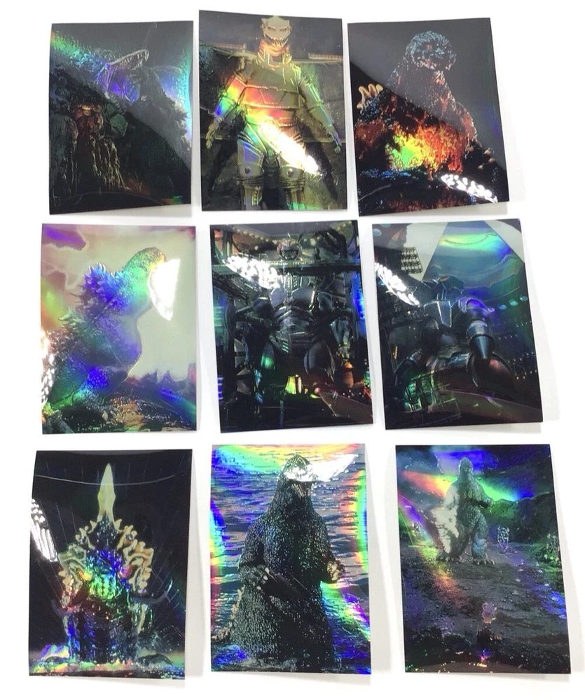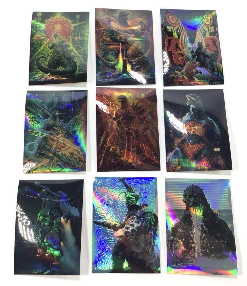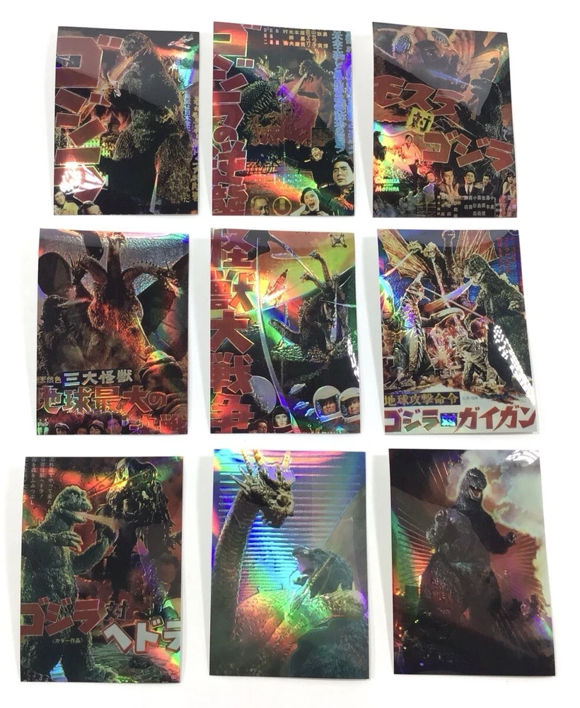 ITEM SPECIFICS AND CONDITION A 54 card rare Godzilla parallel Holo-Chrome complete sticker card set from Amada for your trading card collection. Minor wear. There is a 16 in pencil on the back and another small pencil mark on the back of one card. ITEMS IN USED/PRE-OWNED CONDITION May have scuffs, blemishes, scratches, flaws, or imperfections. All items are described to the best of my ability. If you have a question please inquire before purchasing. Please look at all photos for condition. All cards have been stored and unused. Unless professionally graded, ungraded trading cards may still have small manufacturing scratches and imperfections not showing up in the photos. GENERAL BUYING INFORMATION All items that come from me are securely wrapped, packaged and treated with care. I use both new and/or clean recycled boxes. I can combine small and medium items to save on shipping. Large or heavy items can't be combined. Some items may be shipped with Signed Delivery Confirmation. I appreciate your business and strive to create a happy transaction for you. Thank you for viewing!
