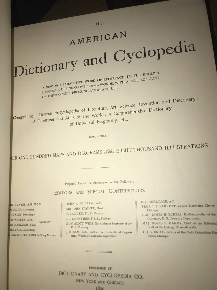 MASSIVE SET. 12 inches tall. Extremely large heavy set. Printed in 1899. NOT COMPLETE. 10 volumes only. This set is not complete. 10 volumes only. Quality leather. Quality paper. A nice antiquarian encyclopedia. Main flaw is not being complete. Some extremity wear. Will ship in many boxes. Large heavy set. This set is NOT complete. This set is not complete. 10 volumes only. Please see my other listings for similar books. Each book will be individually wrapped and well protected for shipping. Shipping is expensive. International postage is at least $350. 2022.10.18