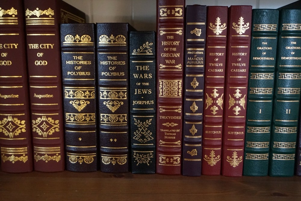 20 Volume Ancient History Lot PUBLISHER: Gryphon Editions CONDITION: Full leather bound editions. Raised bands on spine with gilt lettering. Gilt page edges and cover design. Ribbon page marker. Marble design endpapers. Books are in excellent condition. Titles: 1) The Laws of Plato 2) Select Orations of Cicero 3) Plato's Republic 4) Theophrastus and the Greek Physiological Psychology Before Aristotle by George Stratton 5) The Rise and Fall of the Ancient Republics by Edward Wortley Montagu 6) Troy and Its Remains by Heinrich Schliemann 7) The City of God by Augustine, Volume 1 8) The City of God by Augustine, Volume 2 9) The War with Hannibal by Livy, Volume 1 10) The War with Hannibal by Livy, Volume 2 11) Augustine and the Jews by Paula Fredriksen 12) History of Twelve Caesars by Suetonius, Volume 1 13) History of Twelve Caesars by Suetonius, Volume 2 14) Aphorism of Hippocrates 15) Augustus by E.S. Shucksburgh 16) Seneca's Letters on Ethics 17) Seneca's Natural Questions 18) Greek Medicine in Rome by T. Clifford Allbutt 19) Plutarch's Morals: Theosophical Essays 20) Plutarch's Morals: Ethical Essays