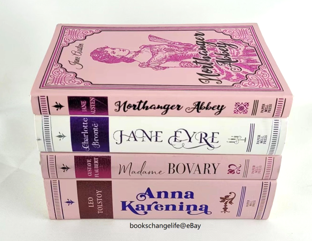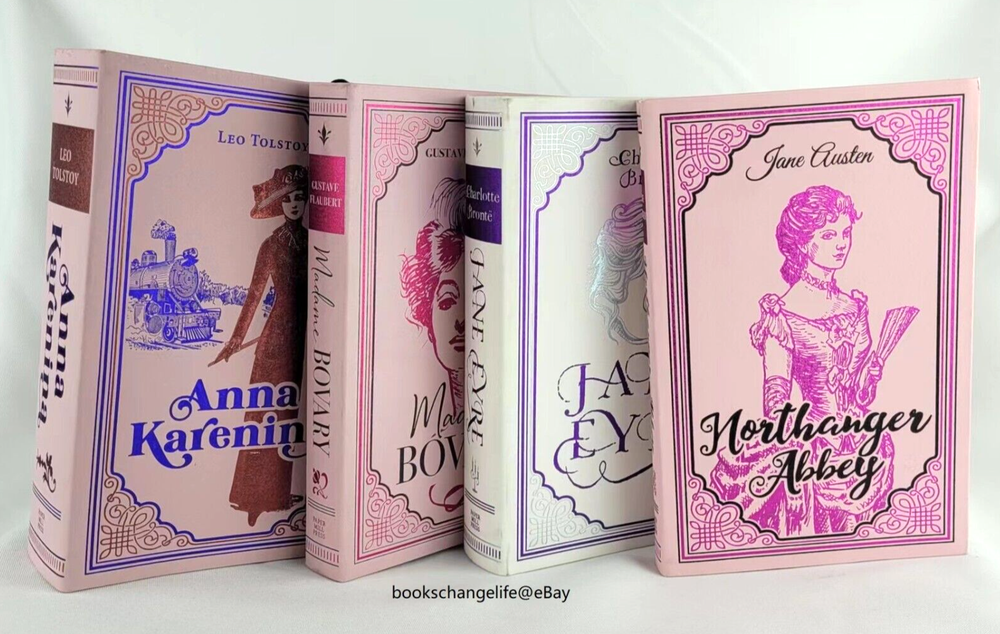 Set of 4 Faux leather bound Classics. This edition of classic novel features a suede-like custom cover with beautiful metallic foiling and a ribbon marker. Anna Karenina Madame Bovary Jane Eyre Northanger Abbey Brand New. Gift quality.