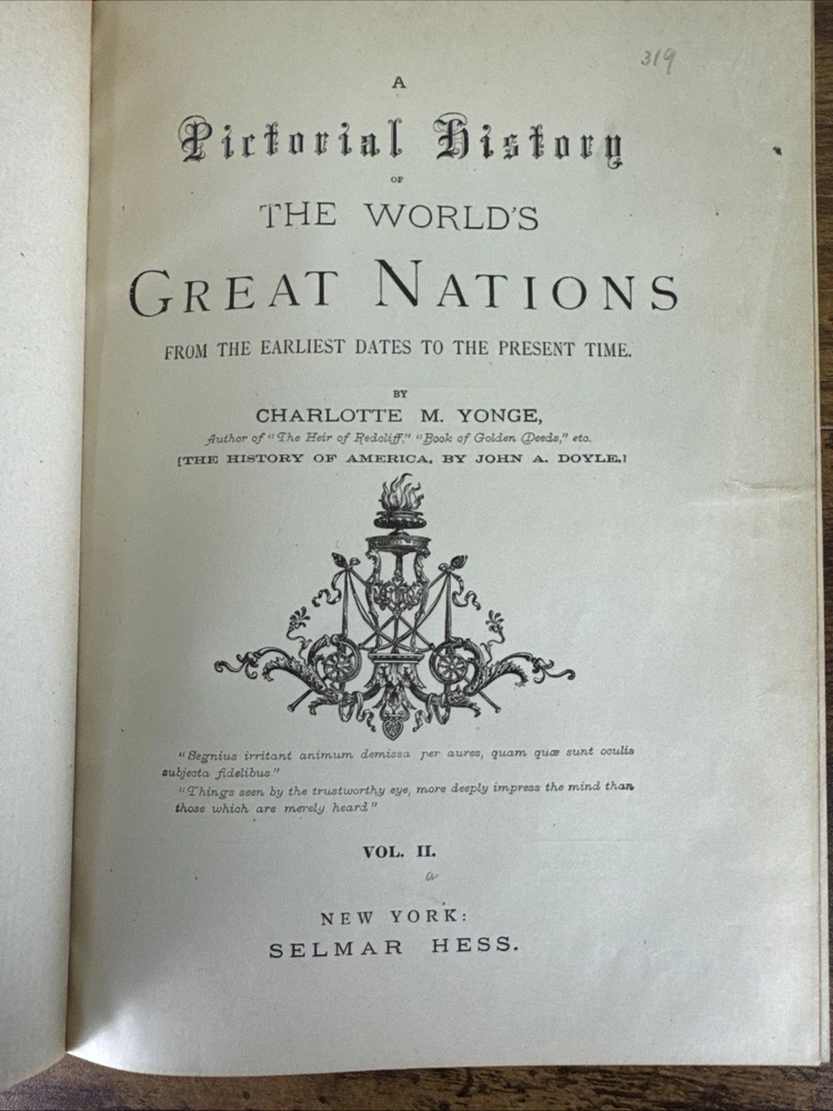 ANTIQUE 1882 PICTORIAL HISTORY OF THE WORLD'S GREAT NATIONS YONGE 3 VOL. SET All 3 volumes in good condition with minor outside wear, message for any questions or concerns...