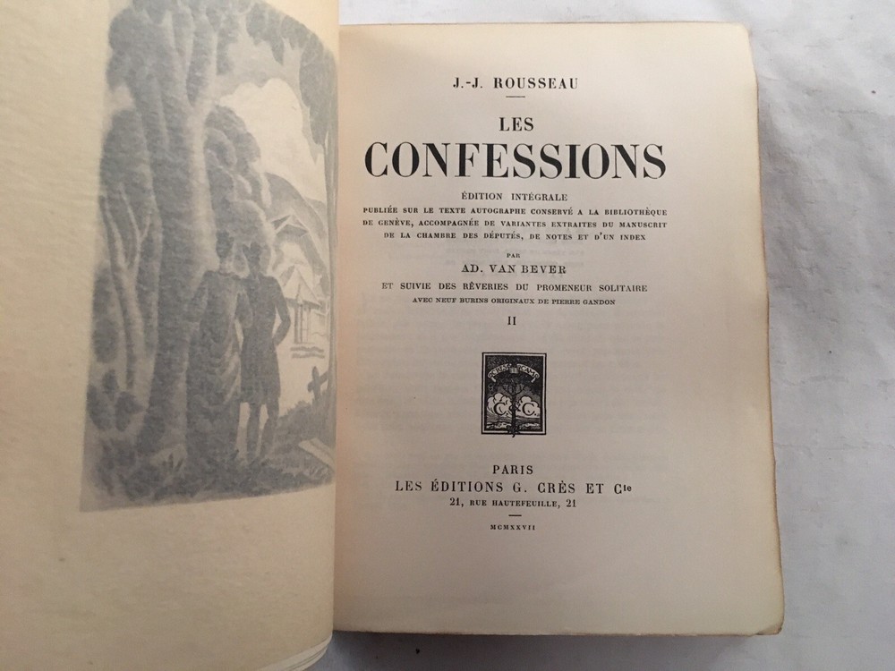 JJ Rousseau, Les Confessions (Paris: 1927) 3 vols. 8 inches high...