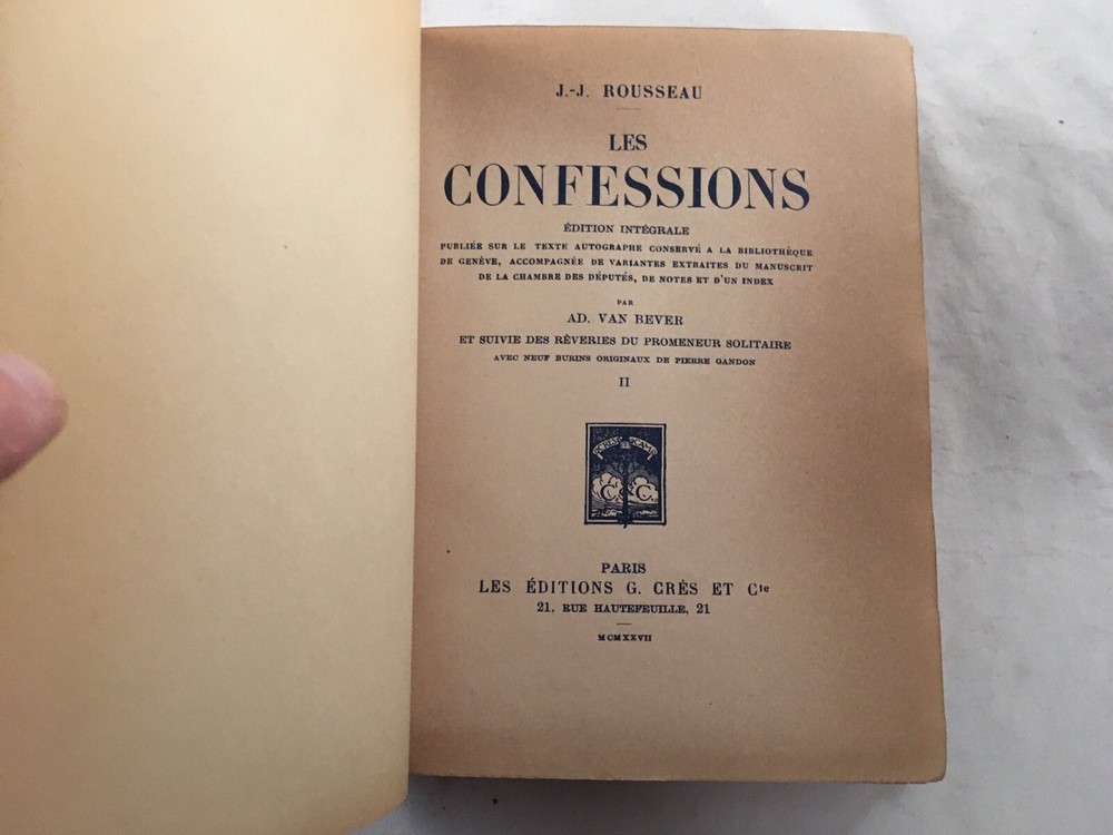 JJ Rousseau, Les Confessions (Paris: 1927) 3 vols. 8 inches high