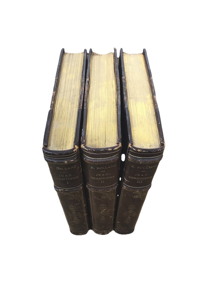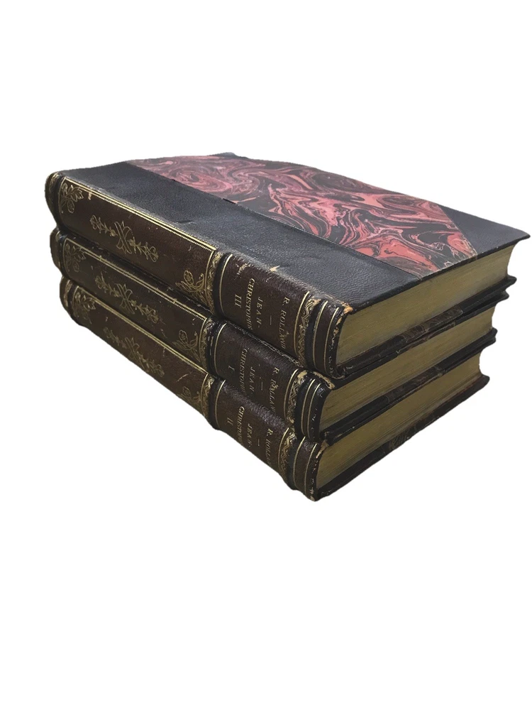 Set of 3 Antique R.Rolland Jean-Christophe French Leatherbound books in good condition for age, no major damage, all pages are intact, please look at all pictures for detail....