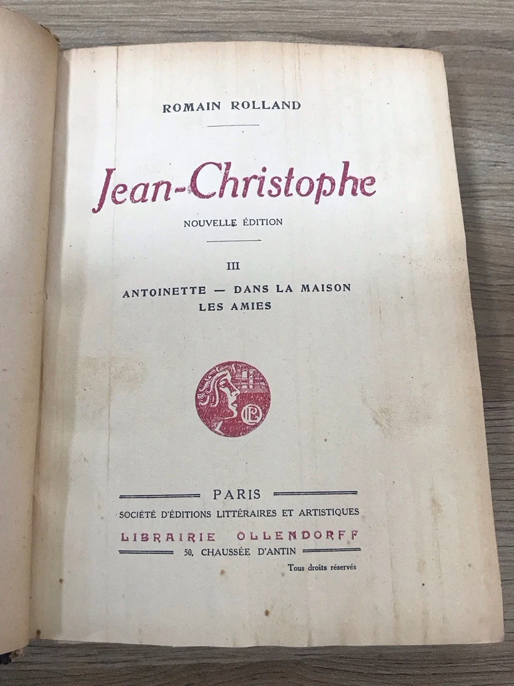 Set of 3 Antique R.Rolland Jean-Christophe French Leatherbound books in good condition for age, no major damage, all pages are intact, please look at all pictures for detail.