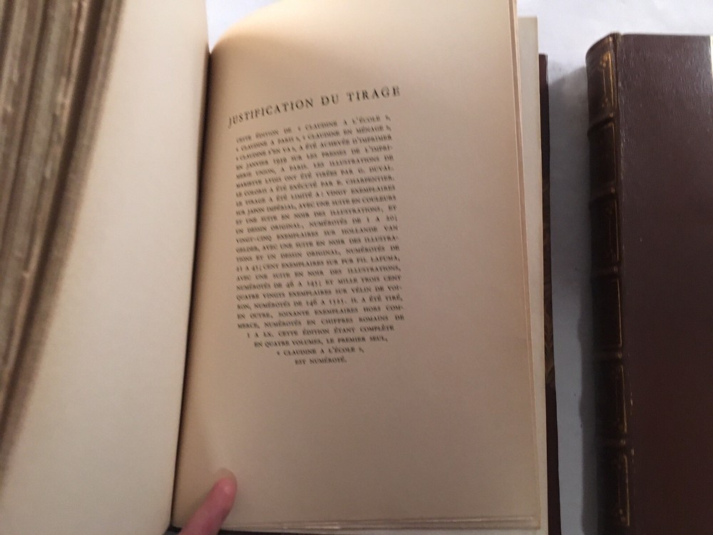 Willy et Colette Willy, Claudine (Paris: 1939) 4 vols. limited edition illustrated copy 9.1/4 inches high