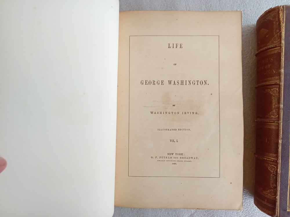 Washington Irving, Life of George Washington (1858-1859) 4 of 5 volumes 10.1/2 inches high...