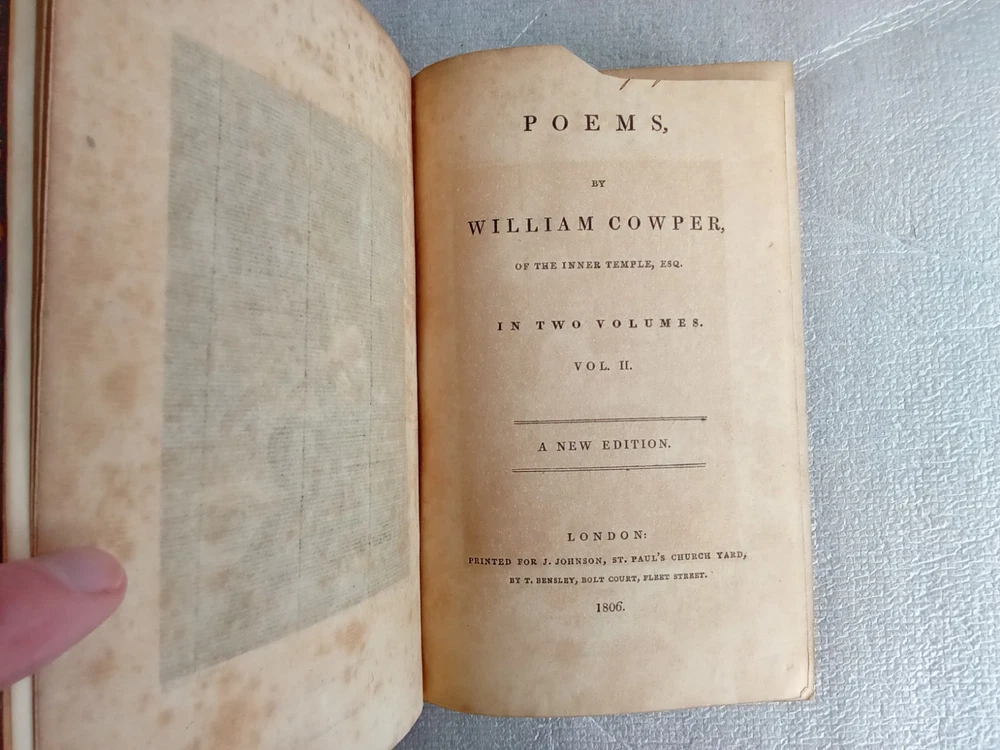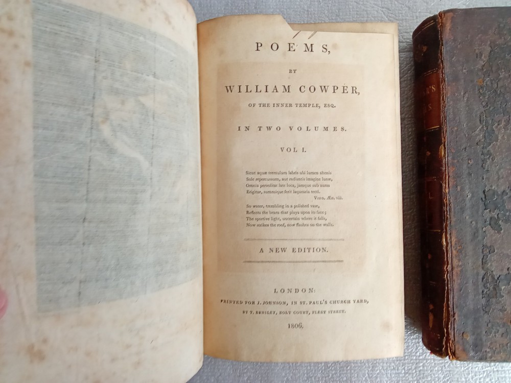 William Cowper, Poems of WIlliam Cowper (1806) 2 vols. approximately 8.1/2 inches high