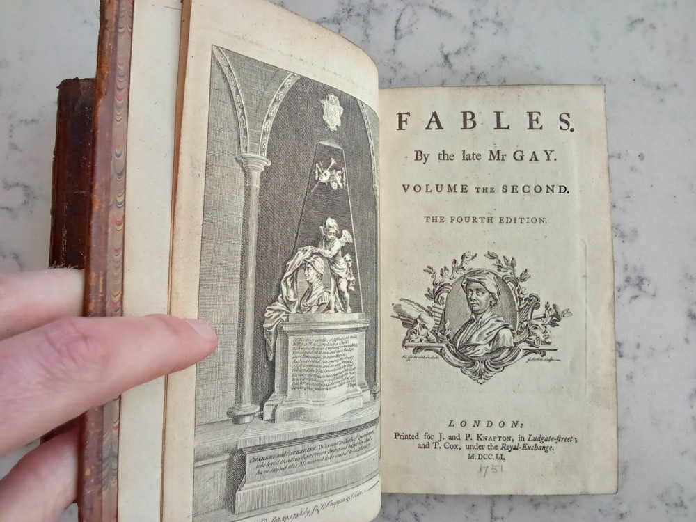 Mr, John Gay, Fables (1747 and 1751) 2 vols. 8 inches high...