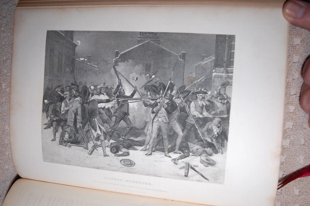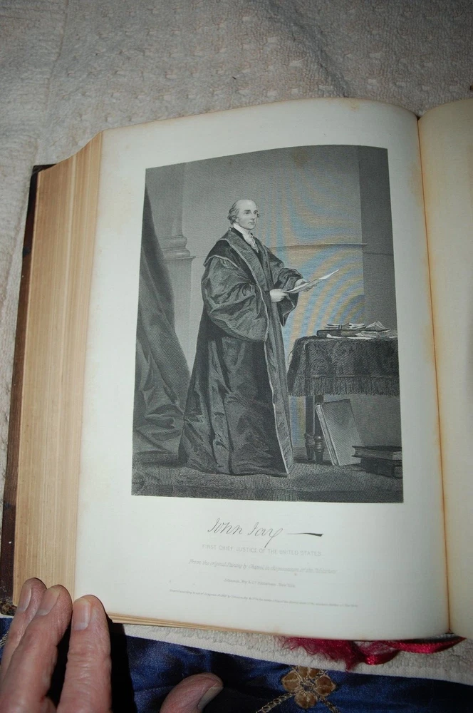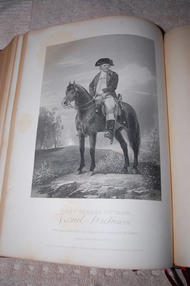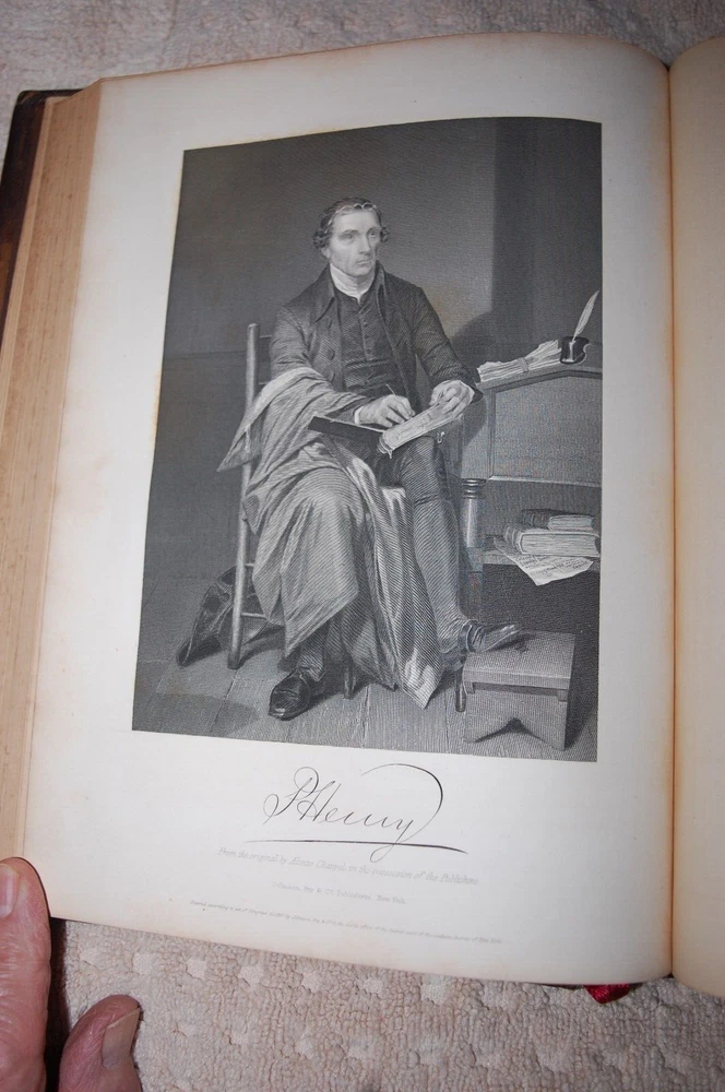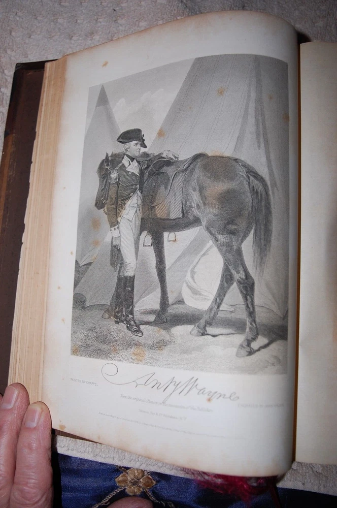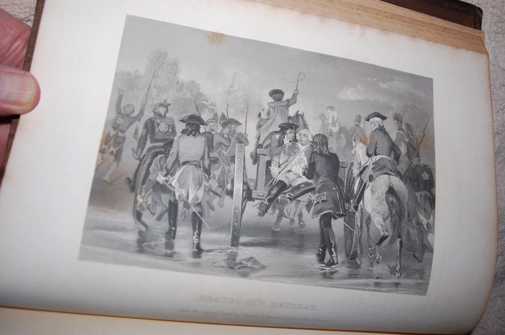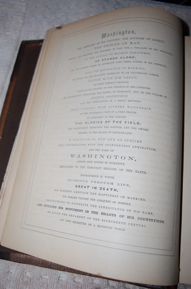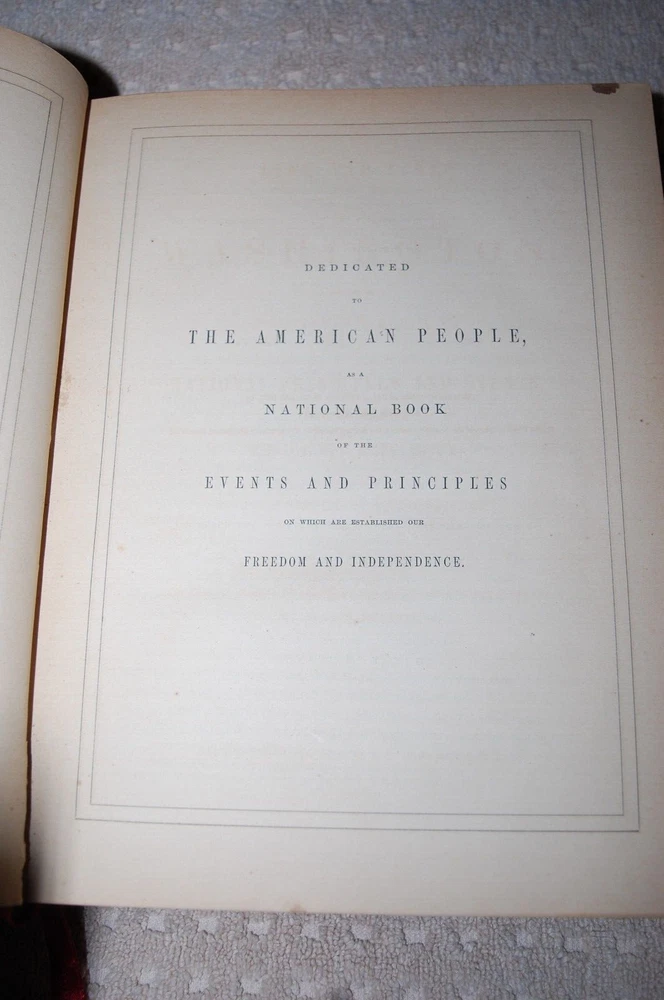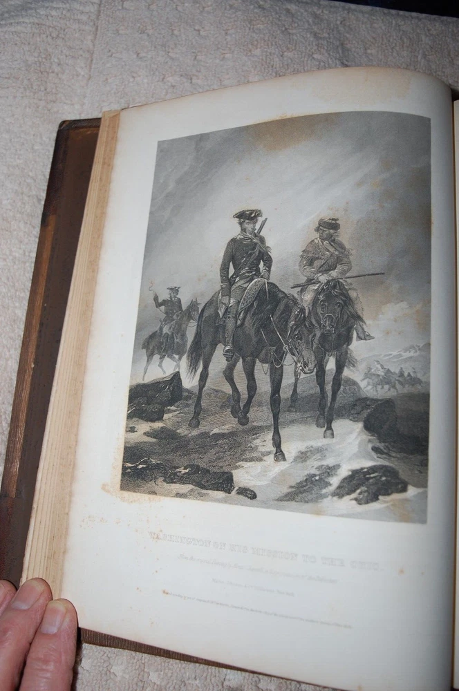 THIS IS FIRST EDITION, TWO VOLUME SET OF BOOKS ON THE LIFE & TIMES OF GEORGE WASHINGTON CONTAINING PARTICULAR ACCOUNT NATIONAL PRINCIPLES AND EVENTS AND OF THE ILLUSTRATIONS AND EVENTS MEN OF THE REVOLUTION BY JOHN FREDERICK SCHROEDER, D.D. ILLUSTRATED WITH HIGHLY-FINISHED STEEL ENGRAVINGS FROM ORIGINAL DESIGNS OF HISTORICAL SCENES AND FULL-LENGTH PORTRAITS BY ALONZO CHAPPEL PUBLISHED BY JOHNSON, FRY, AND COMPANY, 27 BEEKMAN STREET, NEW YORK. BOOKS MEASURE 11 1/4" X 9" AND COVERS ARE CANVAS AND OR LEATHER HARD BACK COVERS. VOLUME #1 HAS 708 PAGES AND VOLUME #2 HAS 762 PAGES. THERE IS VERY MINOR FOXING ON A COUPLE OF PAGES, NO TORN, DOG EARED, OR MISSING PAGES. EACH BOOK HAS THREE RED RIBBON PAGE / BOOKMARKS. PAGE EDGES ARE GOLD GILTED, AND ILLUSTRATIONS ARE SEPARATED BY TISSUE. EACH BOOK WEIGHS APPROXIMATELY 6 LBS 2 OUNCES. BOTH BOOKS ARE IN FINE CONDITION FOR AGE. ENTERED ACCORDING TO ACT OF CONGRESS IN THE YEAR 1857, BY JOHNSON, FRY AND COMPANY. SEE PHOTOGRAPHS FOR ADDITIONAL DETAILS. ORDER SHIPPED INSURED.