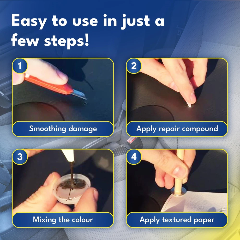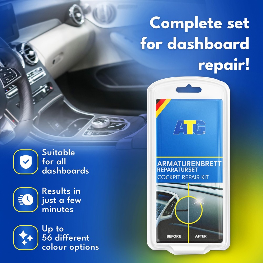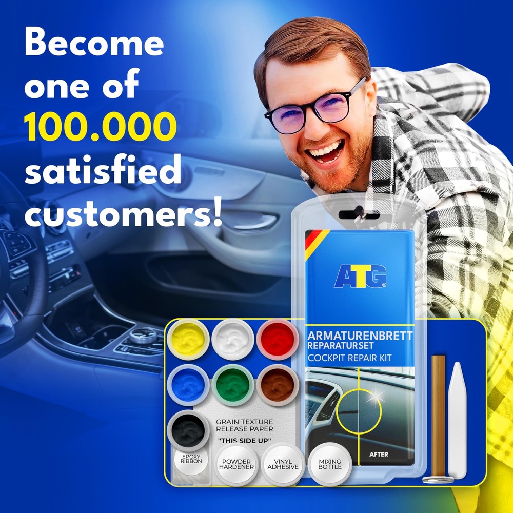 VERSATILITY: The ATG Smart Repair Dashboard Repair fixes mounting holes made by CB radios, speakers, etc. The surface structure paper will help you match the repairs to the pattern of your dashboard. DASH REPAIR: The material remains flexible & resilient after drying for leather surfaces. A hardening powder is included, when being used on harder surfaces such as polyurethane, plastic & vinyl. DESIGNED IN GERMANY: The car dashboard repair kit - can be used several times, saving you money as it is very durable and can be used in all areas! APPLICATION MATERIALS: Vinyl - Leather - Leatherette - Hard plastic - Soft plastic – Similar Surfaces DON'T SCRAP IT, REPAIR IT: We provide our customers with products that help extend the life of their car parts & household items, thereby helping in saving environmental resources and reducing waste.