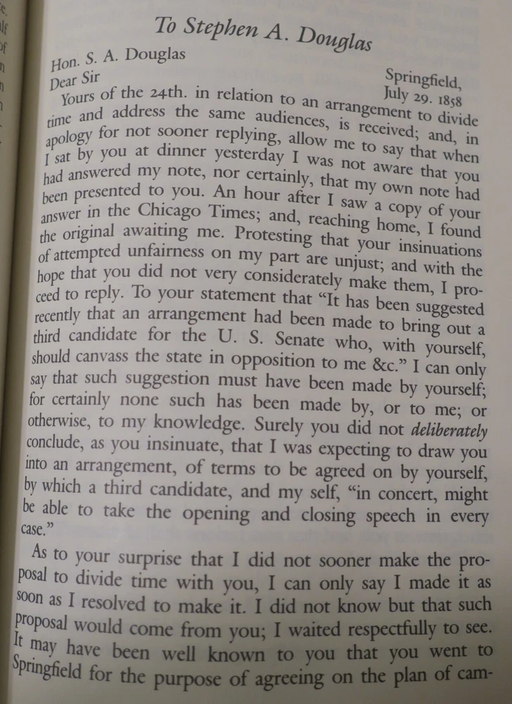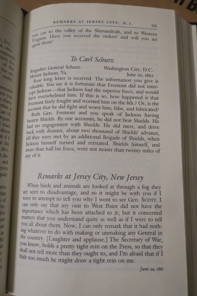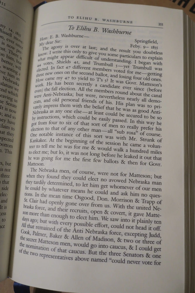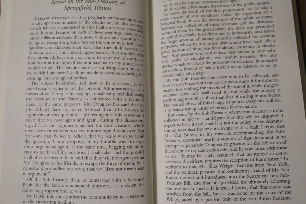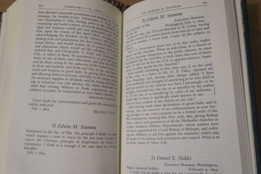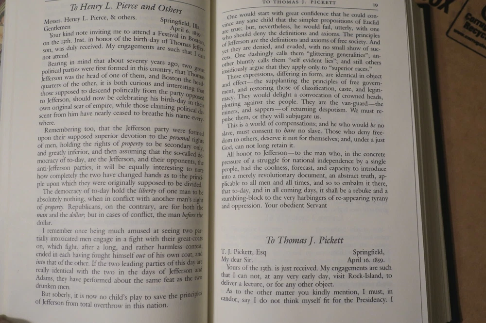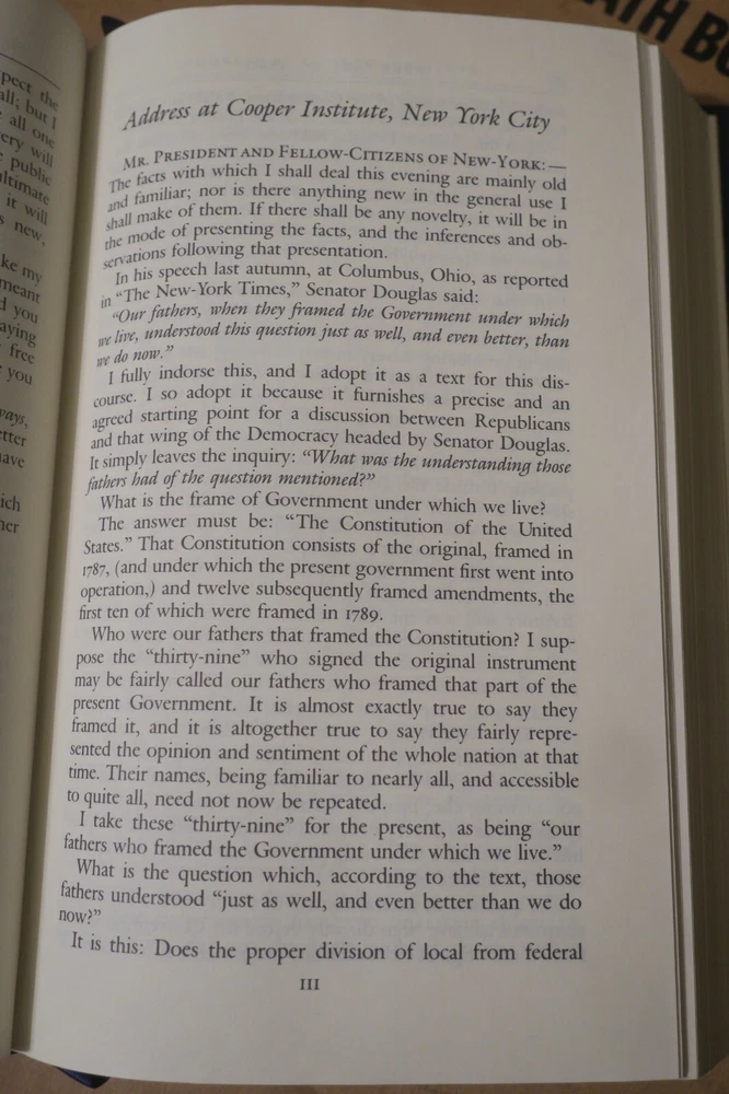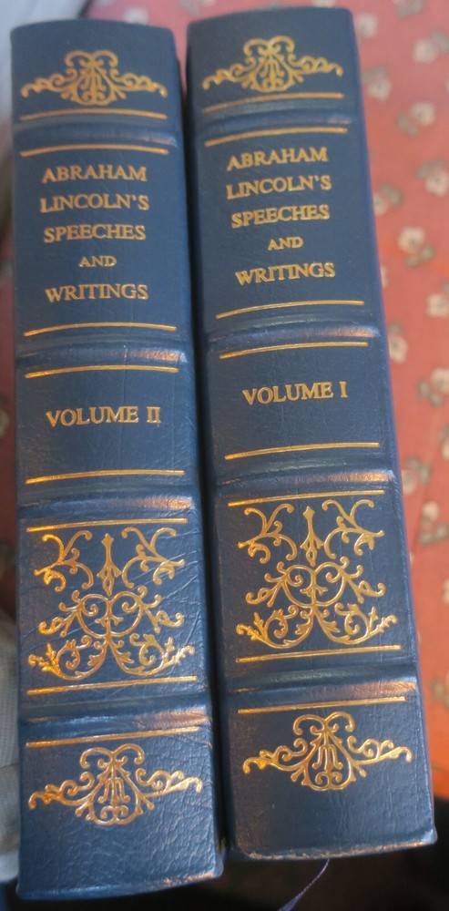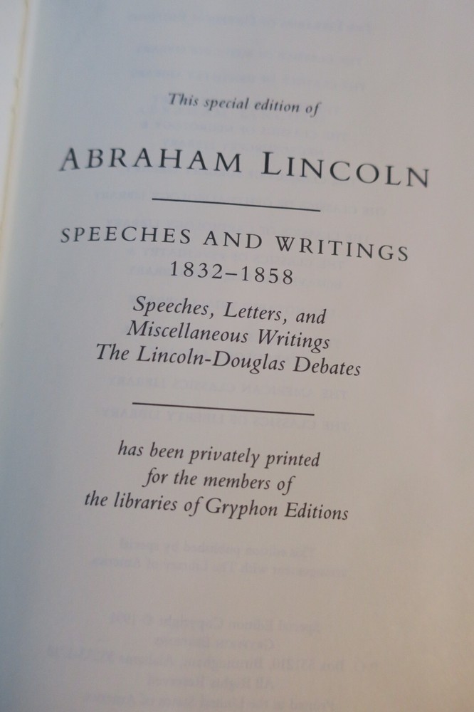 "Speeches, letters, and Miscellaneous Writings [and] The Lincoln-Douglas debates"; 2 volumes, in full gilt lettered and decorated leather; complete, 1991 Special Edition by Gryphon Editions, with permission from The Library of America; 8vo, approx. 5" x 8", 898 & 787 pages, indexed.