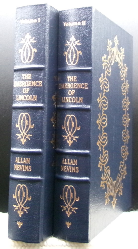 Two Volume Set: THE EMERGENCE OF LINCOLN Volume I: DOUGLAS, BUCANAN, AND PARTY CHAOS 1857-1859 and Volume II: PROLOGUE TO THE CIVIL WAR 1859-1861 by Allan Nevins. Norwalk, Connecticut: The Easton Press, (1988). Collector's Editions, Library of American History Series. The American History series 'Notes From History' printed, double-sided, original and exclusive informational thick-stock page, laid in. Forty-five illustrations including the frontispieces and maps. A significant political history/biography by the National Book Award and two -time Pulitzer Prize winning author , originally published in 1950. Great collectible Gift. Easton Press American History printed bookplate (with NO former owner's name), attached to the page facing the half-title page, else fine and crisp in dark-blue leather with gilt embossed patterned decorations to the front and rear covers, gilt embossed decorations and titles to the raised four-band hubbed spines, blue-and-yellow headband and tail-band, all page edges bright gilt, blue stripes and stars patterned end-papers, and a sewn-in blue silk ribbon marker. Octavos; 472 pages; index and 524 pages; appendices; bibliography; index. PLEASE VIEW OUR STORE FOR MORE GREAT HISTORY BOOKS THANKS! Created by eBay Seller's Assistant Basic.