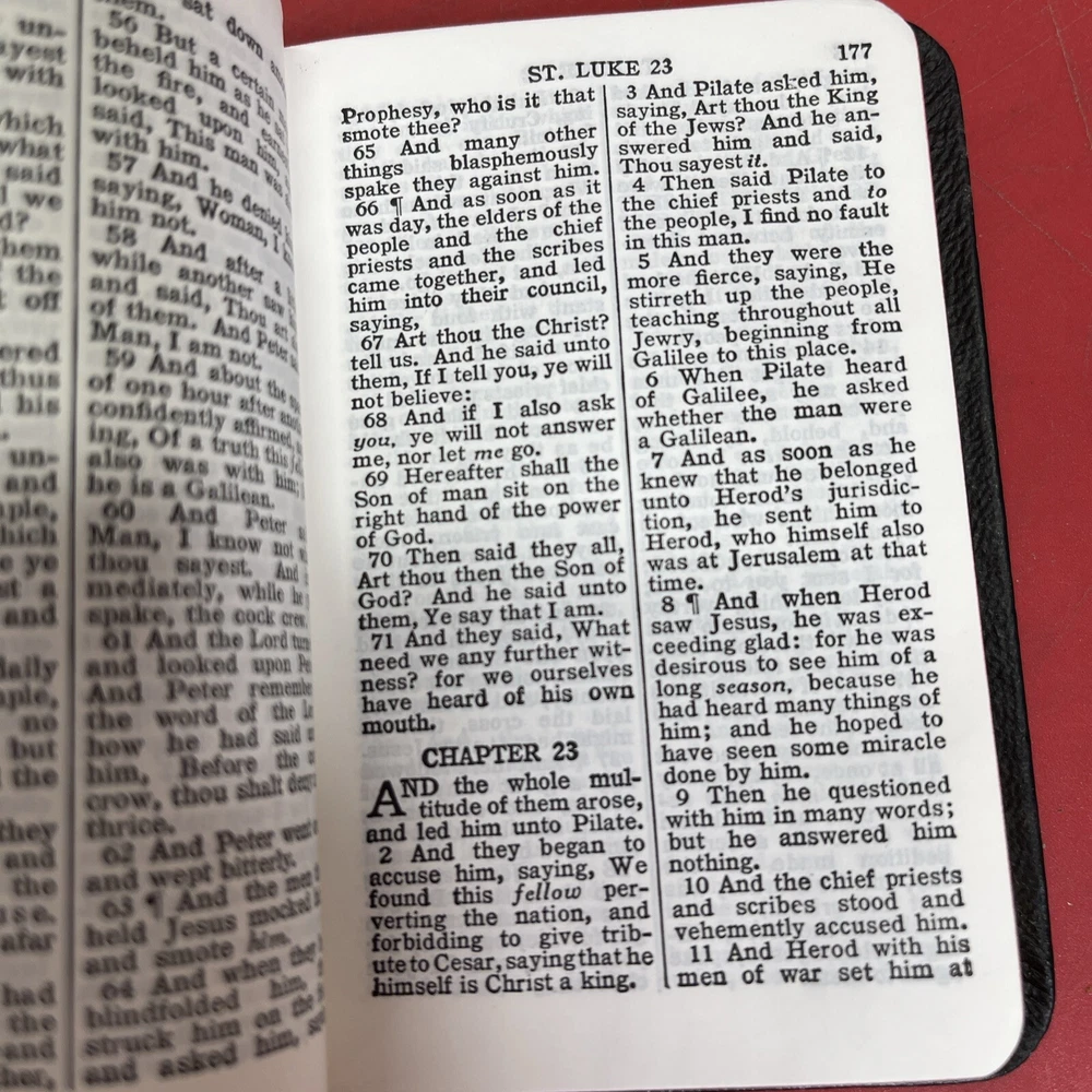 This collector's edition box set features the American Bible Society's New Testament with Psalms in a faux leather bound mini format. Published in 1963, this vintage book series is a nonfiction narrative type that is perfect for religious and spiritual topics. The book is in English and intended for adults. The book features the original English language and is a part of the American Bible Society's Book series. It is a perfect addition to any collection with its unique format and design. The book is not signed and the country/region of manufacture is unknown. This pocket Bible is published by the American Bible Society and is a must-have for any religious enthusiast.