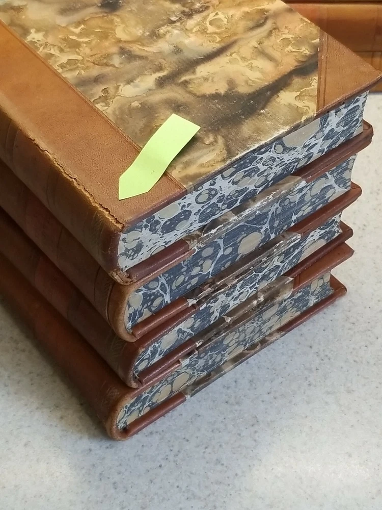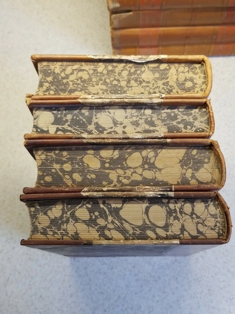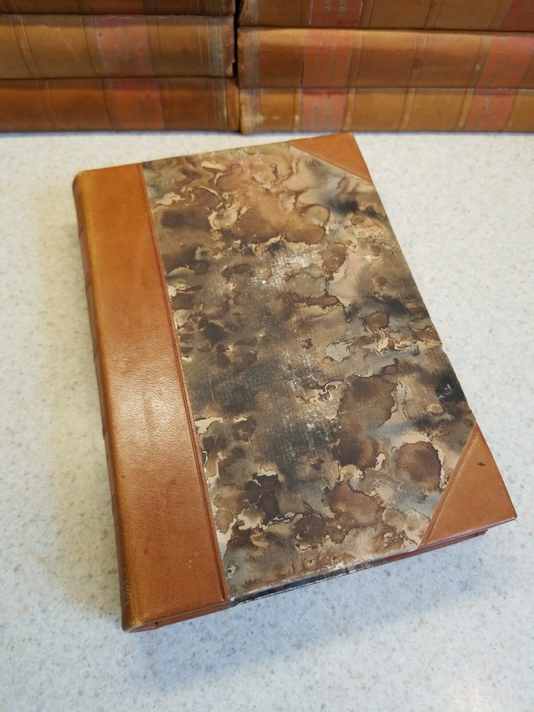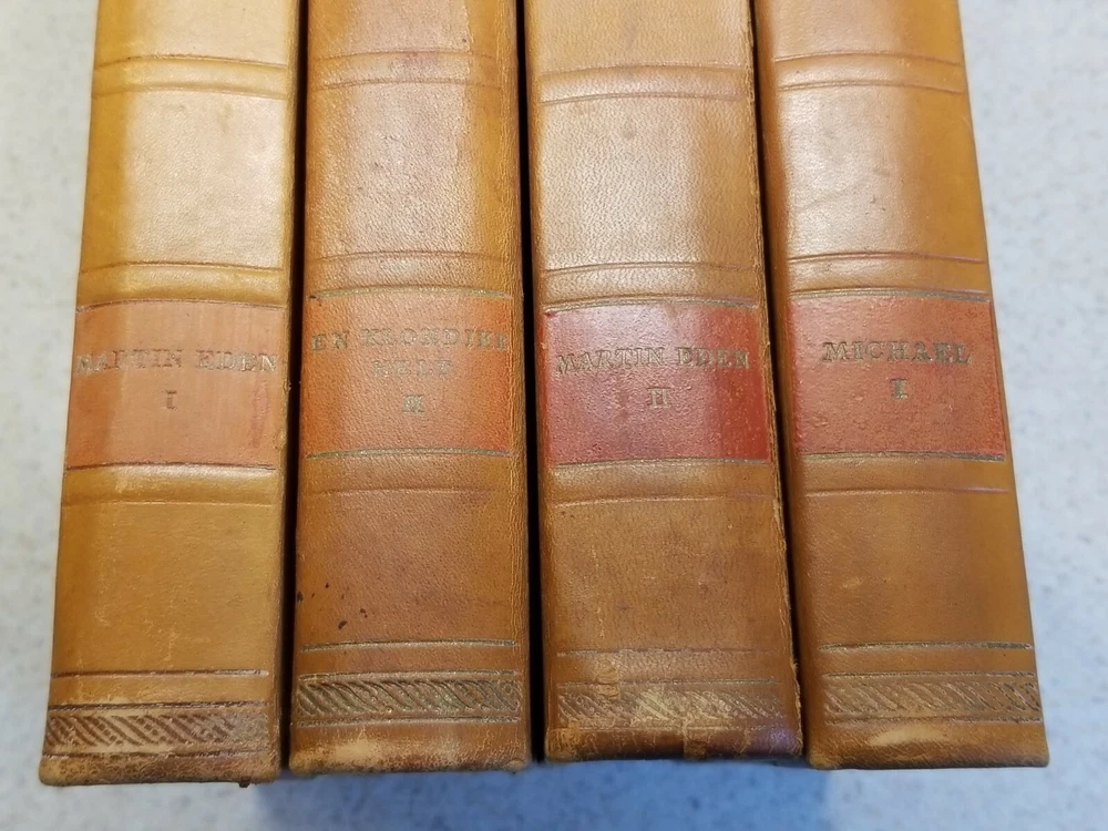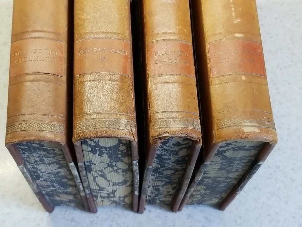 VINTAGE 16 volume JACK LONDON Leather Bound marbled boards/sides Danish Version. This set is a Danish verion and all 16 volumes are in Danish. Please see all photos for pics of the titles. Each book has marble boards and the 3 sides of each is marbleized as well. There is wear on the books but they are pretty much intact. 2 of the volumes have a tear in the leather, as you can see in my pics. 2 of the volumes are also duplicates. I think that this set dates to the 1920's I think but I cannot say for certain. Please contact me with any questions and I will respond promptly. Ships with USPS Media Mail. Thanks for looking!