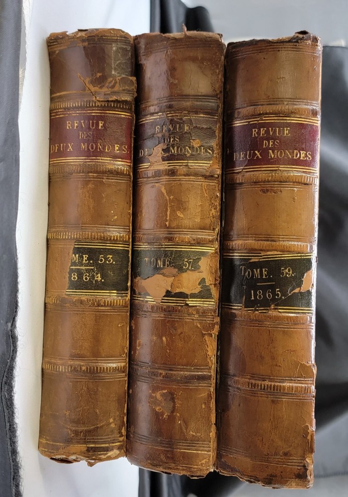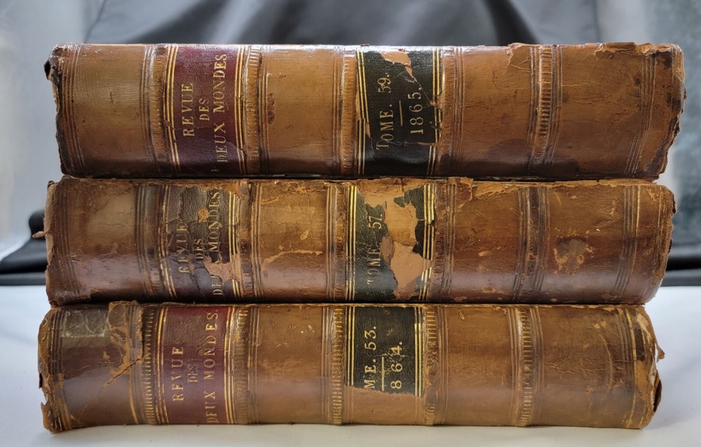 Antique 1884/5 French Book Set 3 Volumes Leather Revue Des Deux Mondes Home Decor These are fantastic antique books, the leather has moderate demand and two of the books jacket covers are loose but still make excellent decor pieces.