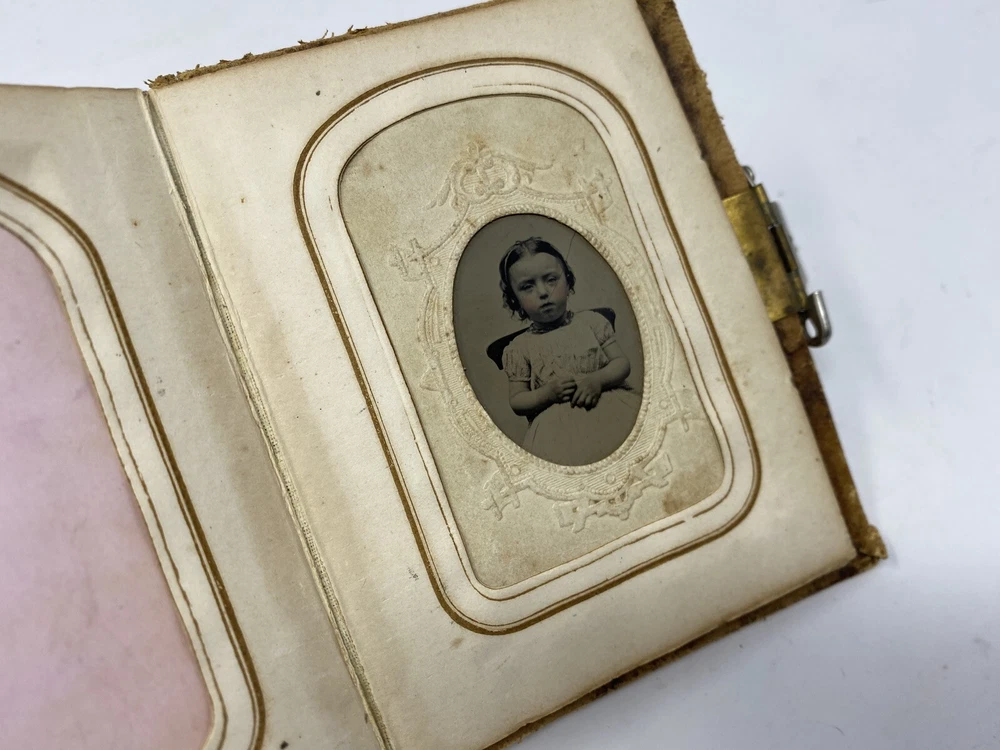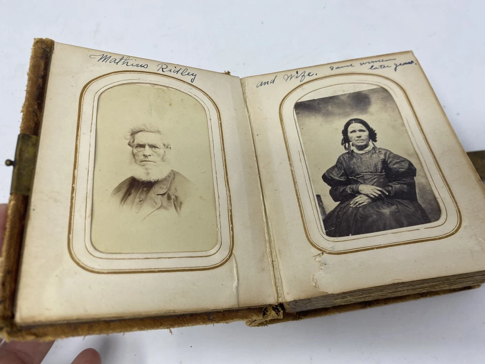 A unique piece of history! See photos for details. Book contains 41 portraits. Some labeled. Tintypes and paper photographs. Binding is intact but book has appropriate wear consistent with age
