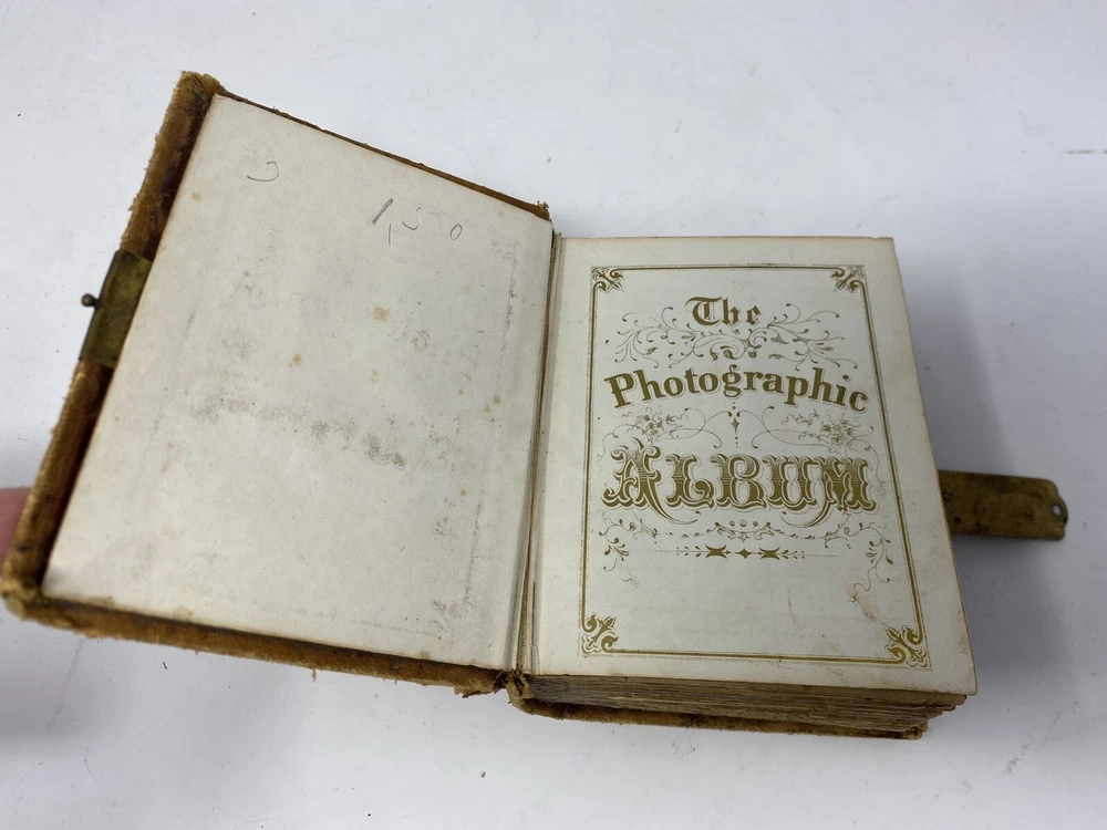 A unique piece of history! See photos for details. Book contains 41 portraits. Some labeled. Tintypes and paper photographs. Binding is intact but book has appropriate wear consistent with age...