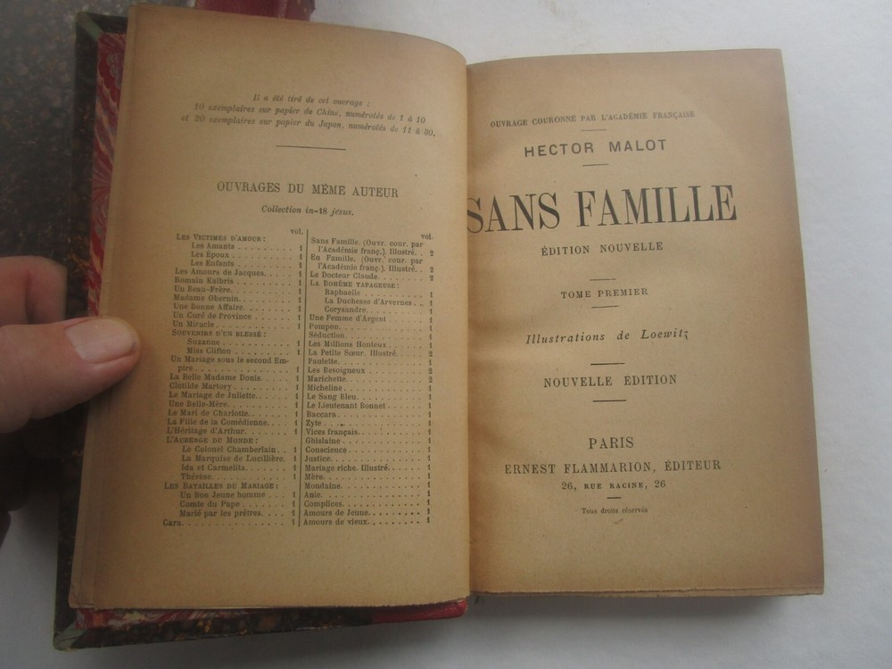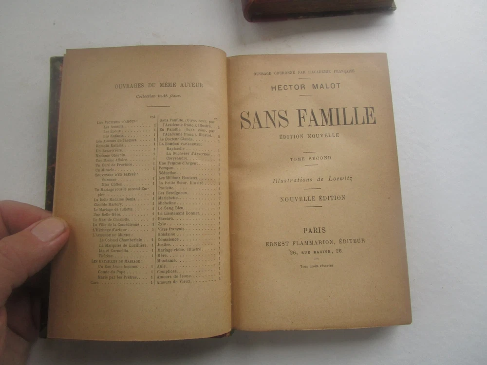This antique 2 volume set of leather bound books is a must-have for any collector or book enthusiast. The books are beautifully illustrated and written by H Malot Paris, featuring a captivating storyline that will keep you engaged. The first edition of these books is a rare find and will make a great addition to any collection. The books are in excellent shape and have been well-preserved, making them a great long-lasting investment. The cover is adorned with intricate detailing and features the title and author's name. The pages are clean and free of any tears or folds, making them an ideal gift for anyone who loves antique books. Don't miss out on the opportunity to own these exquisite books!
