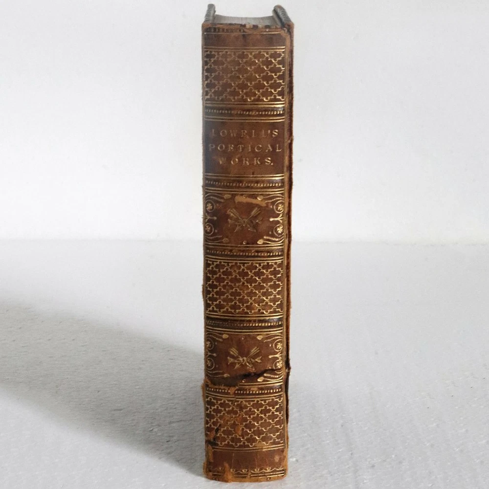 TITLE The Poetical Works of James Russell Lowell PUBLISHER Macmillan and Co. (London, England) BINDING Full leather binding ILLUSTRATED Black and white engraving frontispiece LANGUAGE English EDITION Complete edition SUBJECT(S) Poetry AUTHOR(S) James Russell Lowell (American, 1819-91) PERIOD Queen Victoria (1837-1901) | Late 19th century DATE Copyright 1883 DIMENSIONS Width 4.25 Depth 1 Height 6 inches CONDITION Note: cover detached.
