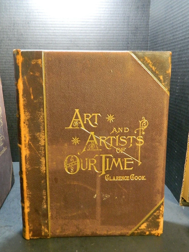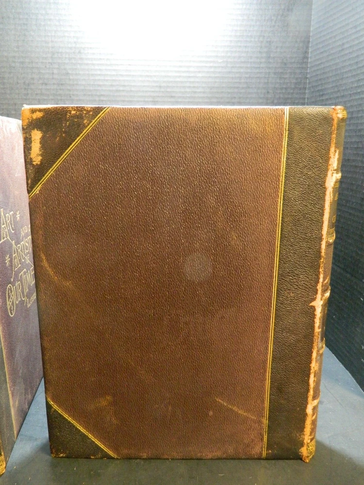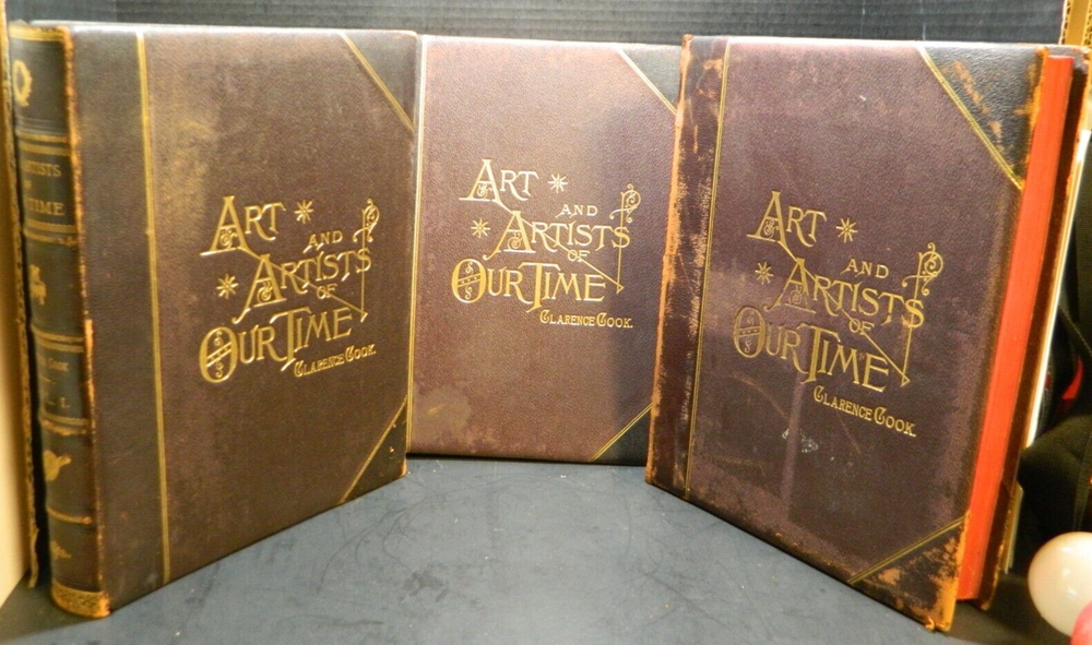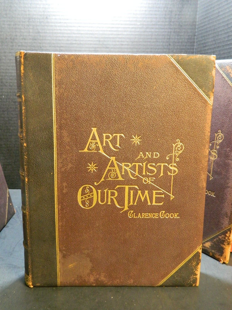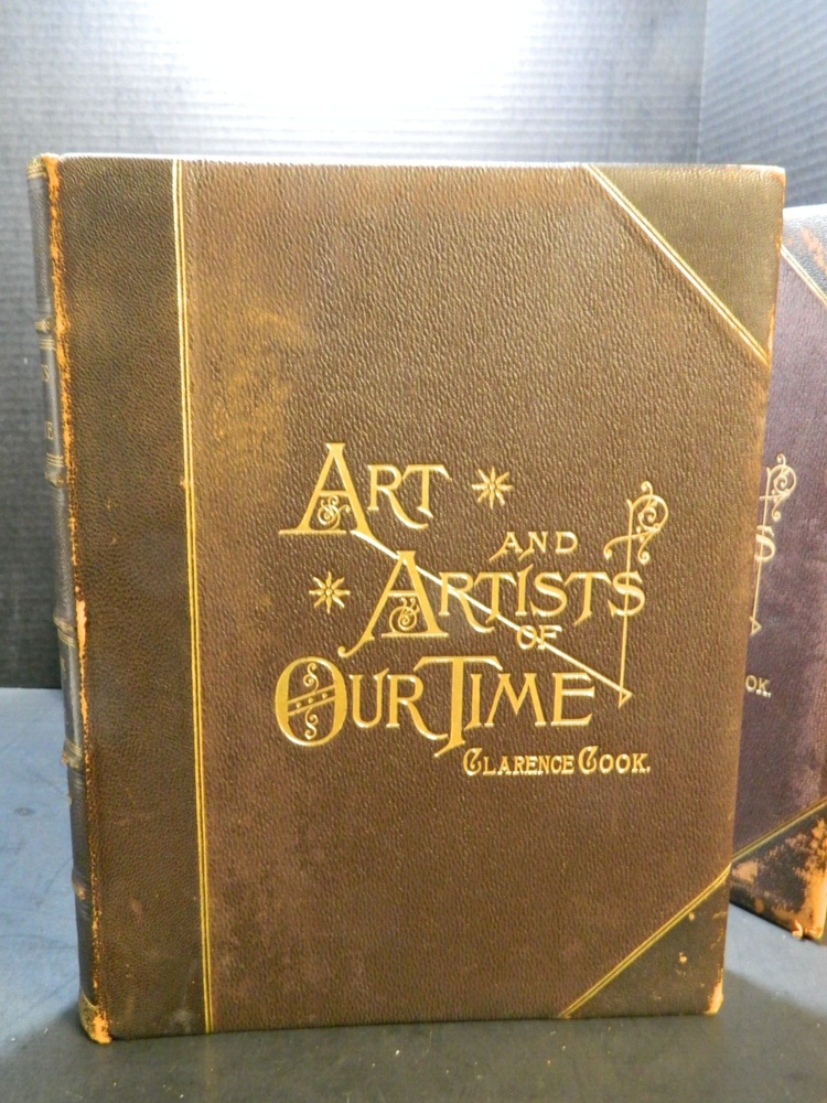 You are bidding on Antique Leather Bound Art And Artists Of Our Time By Clarence Cook (3) Volume Set (1888) Published By Selmar Hess - New York 13" x 10.25" x 2" each Good - Very Good Condition The covers show their age and use. The inside pages are in very good - excellent condition. There are several loose pages inside. Winner pays $19.95 for shipping and handling Storage Box: # Large Items