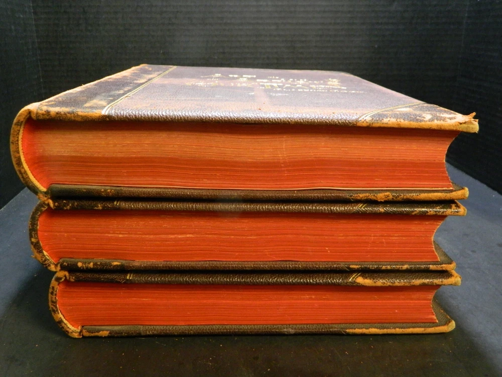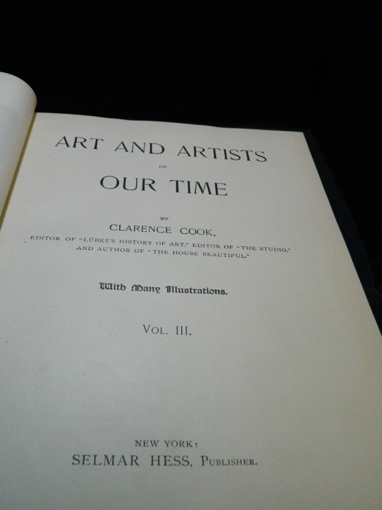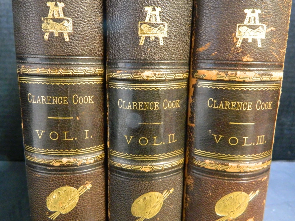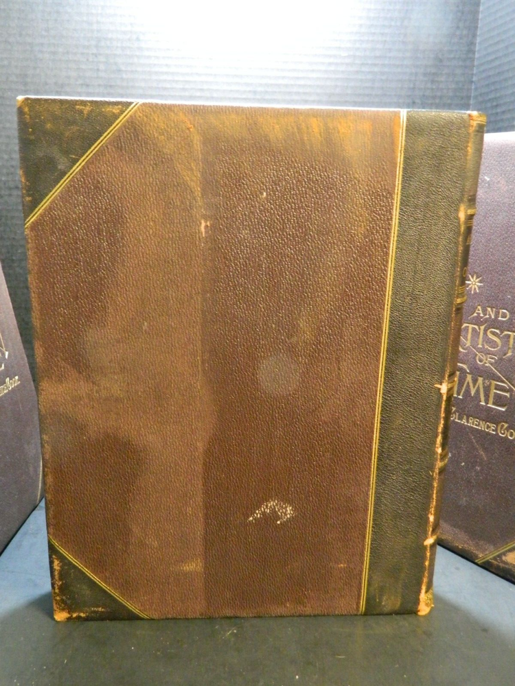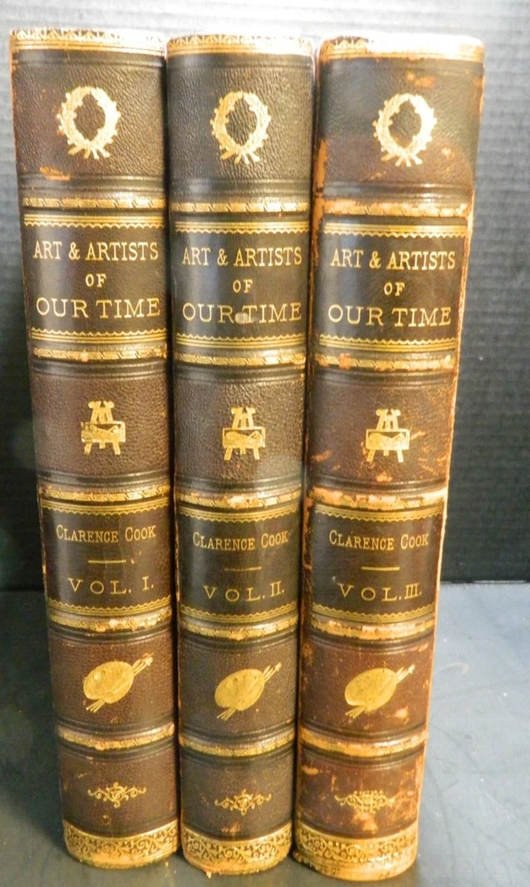 You are bidding on Antique Leather Bound Art And Artists Of Our Time By Clarence Cook (3) Volume Set (1888) Published By Selmar Hess - New York 13" x 10.25" x 2" each Good - Very Good Condition The covers show their age and use. The inside pages are in very good - excellent condition. There are several loose pages inside. Winner pays $19.95 for shipping and handling Storage Box: # Large Items